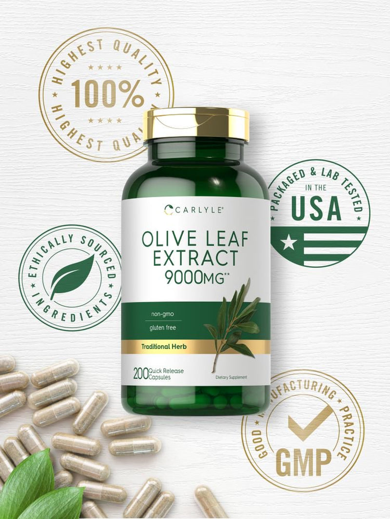 Olive Leaf Extract | 9000Mg | 200 Capsules | High Potency Formula | by Carlyle