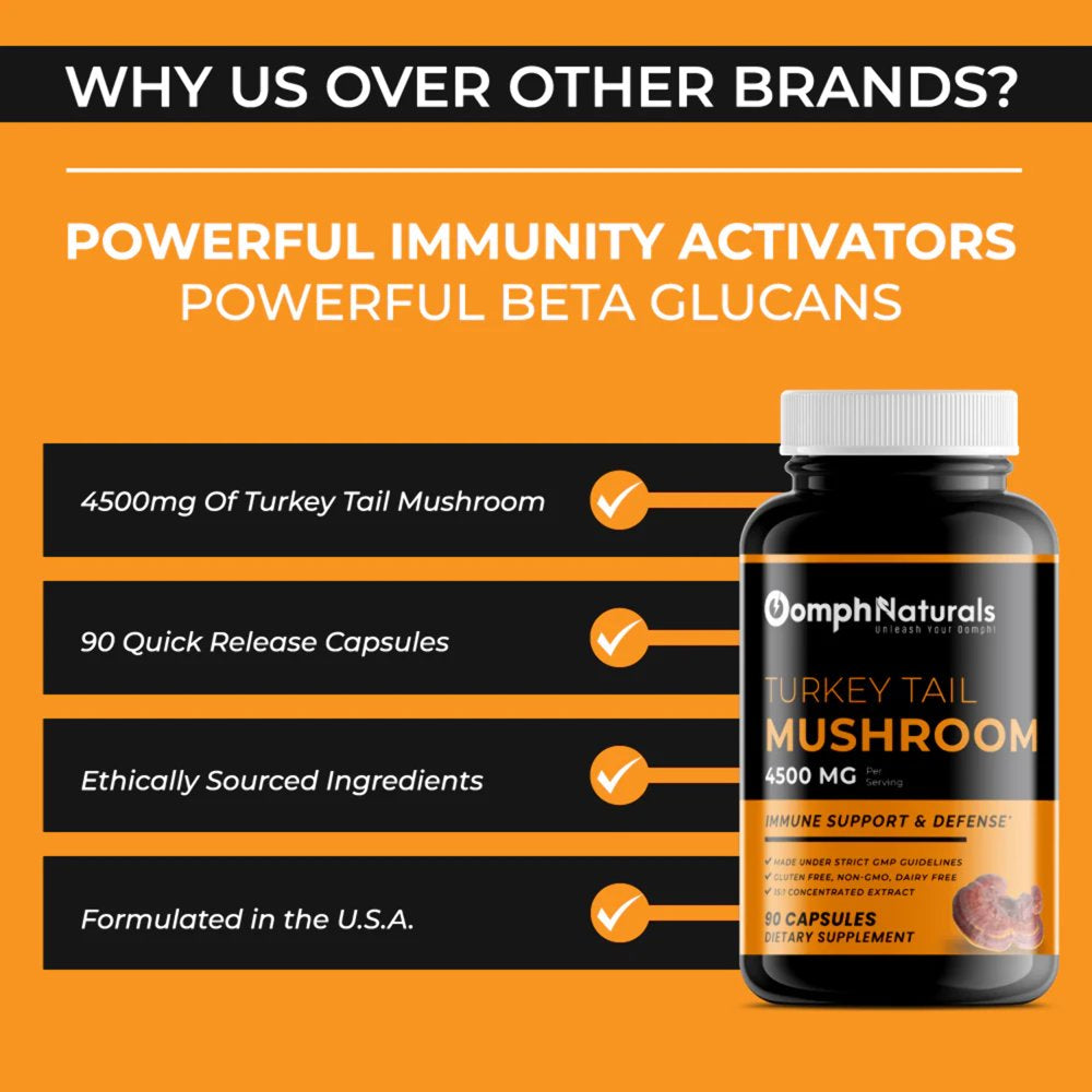 Oomph Naturals Turkey Tail Mushroom Capsules, 4500Mg Extract, 90 Day Supply, Non-Gmo, Gluten Free, Superfood Supplement for Immune Support Gut Health
