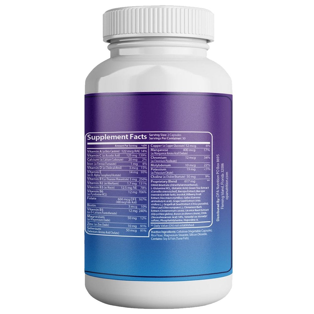 - Comprehensive Nutrient Blend: OPA Genius combines a range of essential nutrients such as vitamins A, C, D, E, B1, B2, B3, B5, B6, and potent minerals including magnesium, calcium, biotin, zinc, selenium, chromium, and potassium. This cognitive function supplement offers a well-rounded approach to maintaining optimal brain health.