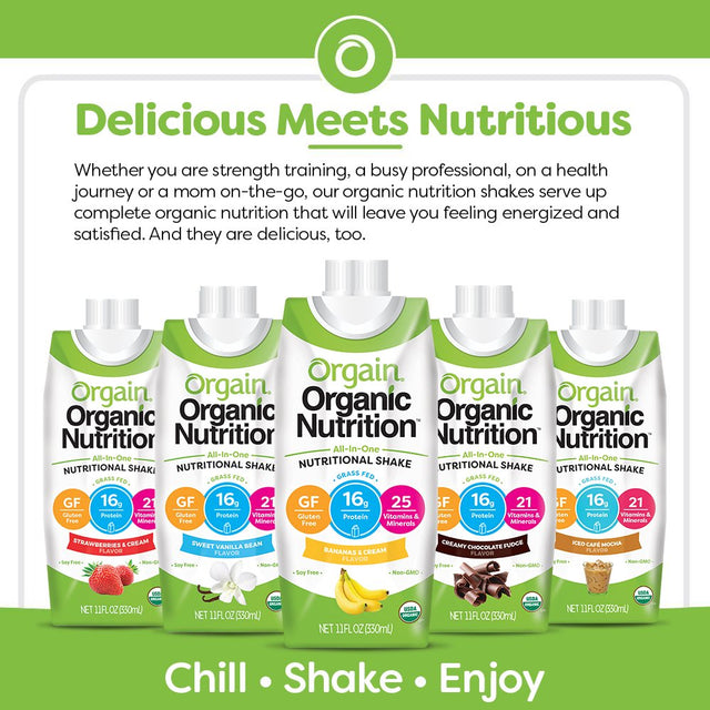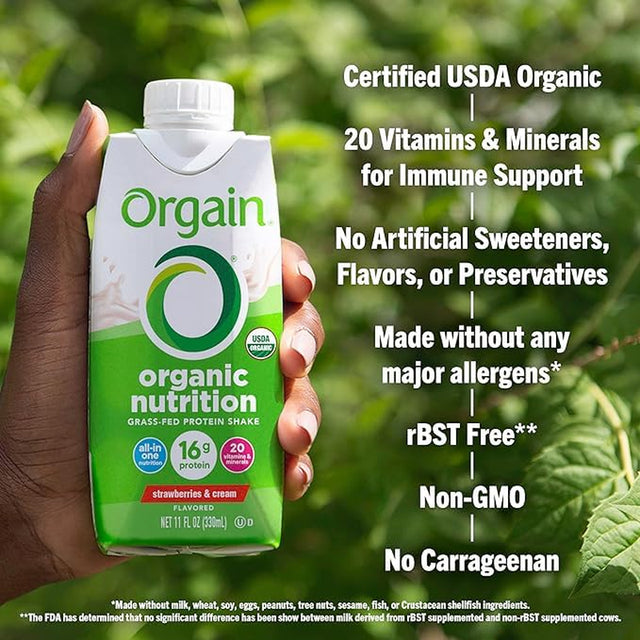 Orgain Organic Nutritional Shake, Strawberries & Cream - Meal Replacement, 16g Protein, 21 Vitamins & Minerals, Gluten Free, Soy Free, Kosher, Non-GMO, 11 Ounce - Pack of 12 (Packaging May Vary)