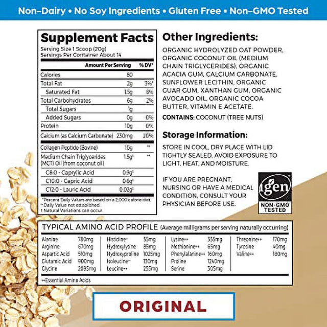 Orgain Collagen Creamer with Organic Oatmilk Powder, Original - 10G of Hydrolyzed Grass-Fed Collagen, 1G of Sugar, Made with MCT, Avocado, and Coconut Oil, No Dairy or Soy, Non-Gmo, 10 Oz