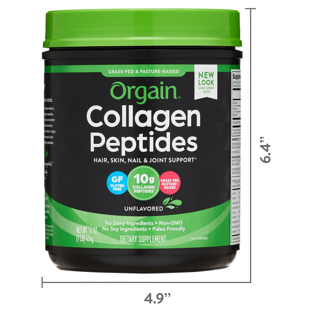 Orgain Grass Fed Hydrolyzed Collagen Peptides Protein Powder - Paleo & Keto Friendly, Amino Acid Supplement, Pasture Raised, Gluten Free, Dairy Free, Soy Free, Non-GMO, Type I and III, 1 lb.