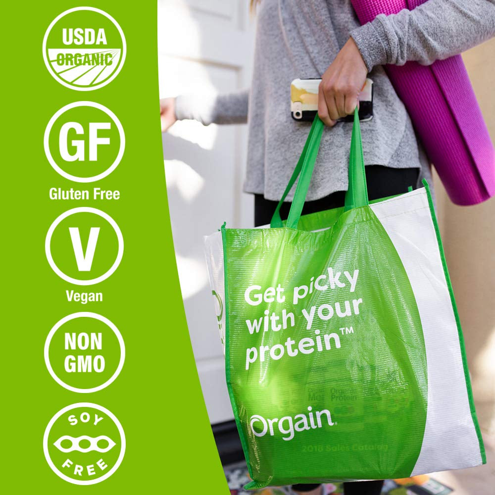 - Orgain Organic Protein & Greens provides 21g of plant-based protein per serving from pea, brown rice and chia seeds as well as an organic greens and veggies blend with spinach, kale and broccoli.