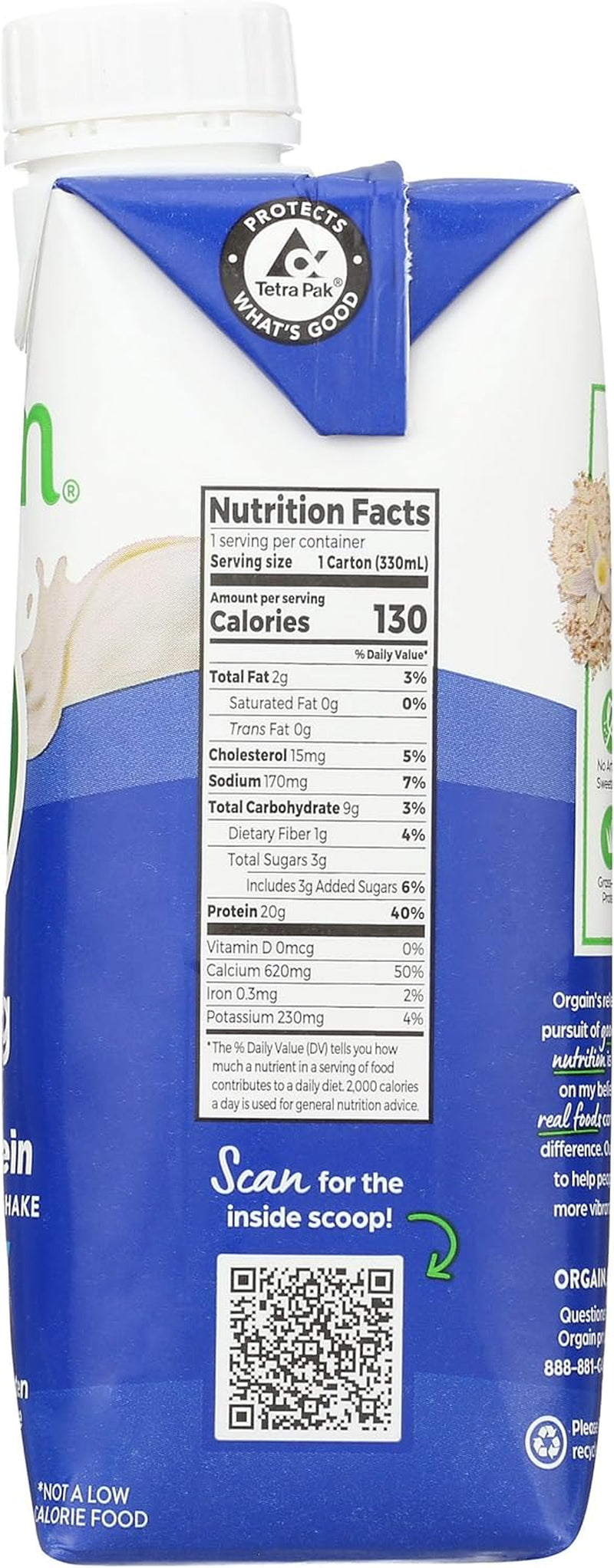 Orgain Organic Grass Fed Vanilla Bean Protein Shakes are a naturally delicious nourishment drink with 20g of grass fed milk protein sourced from New Zealand. Each one is Soy and Gluten Free, No Sugar Added and Non-GMO with no hormones, antibiotics, artificial flavors, colors or preservatives.