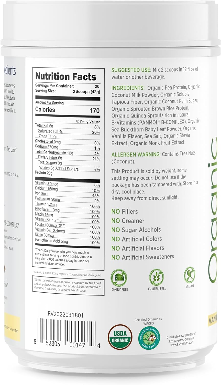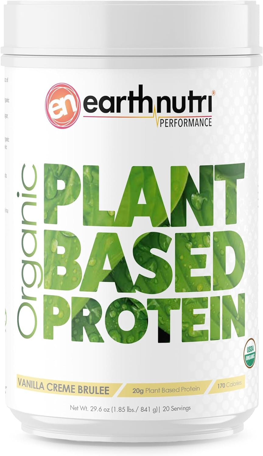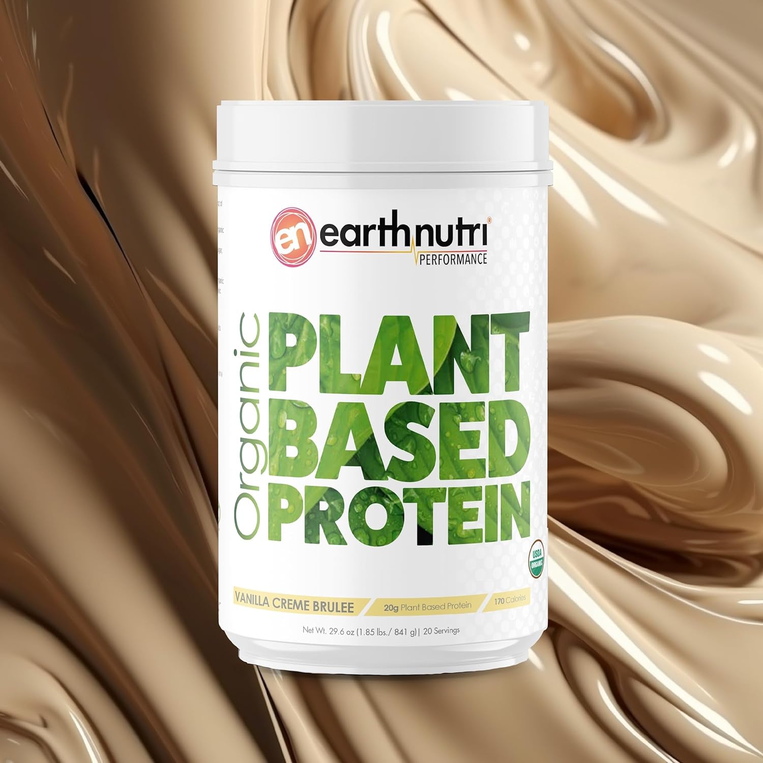 Organic Plant Based Protein Vanilla Creme Brulee Certified Organic Plant Sources, PANMOL B Complex, Quinoa Sprouts, Pea Protein, Flax Seed Protein 20 Servings