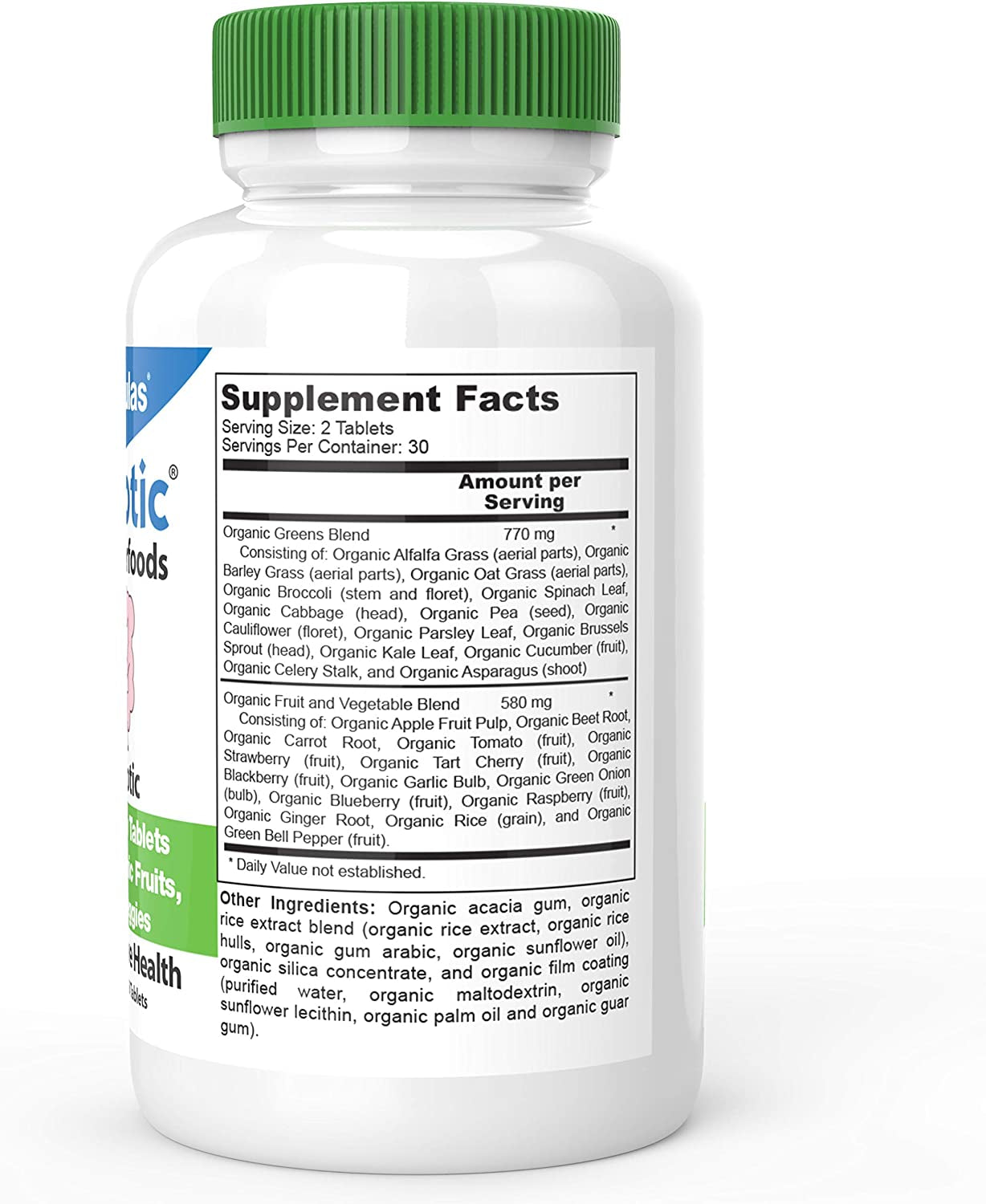 Organic Prebiotic Fiber for Constipation Relief & Weight Loss | Nexabiotic Superfood Tabs for Probiotic Digestive Health, 60 Tablets