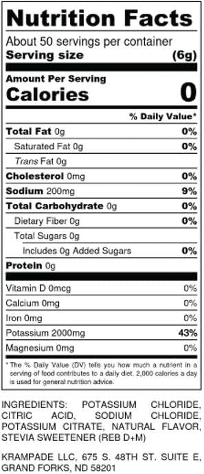 - 2000 mg Potassium Per Serving: 25x more potassium and 6.2x more electrolytes than the leading sports drink, 42% of your recommended daily intake of potassium per serving, the equivalent of eating 5 bananas with Zero Calories! The ultimate solution to Keto Flu