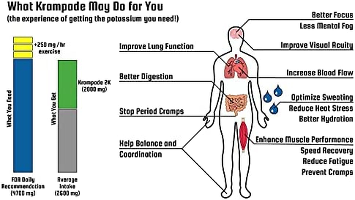- Better than Pills: Krampade potassium solutions are better absorbed, safer, and easier on the stomach compared to potassium pills