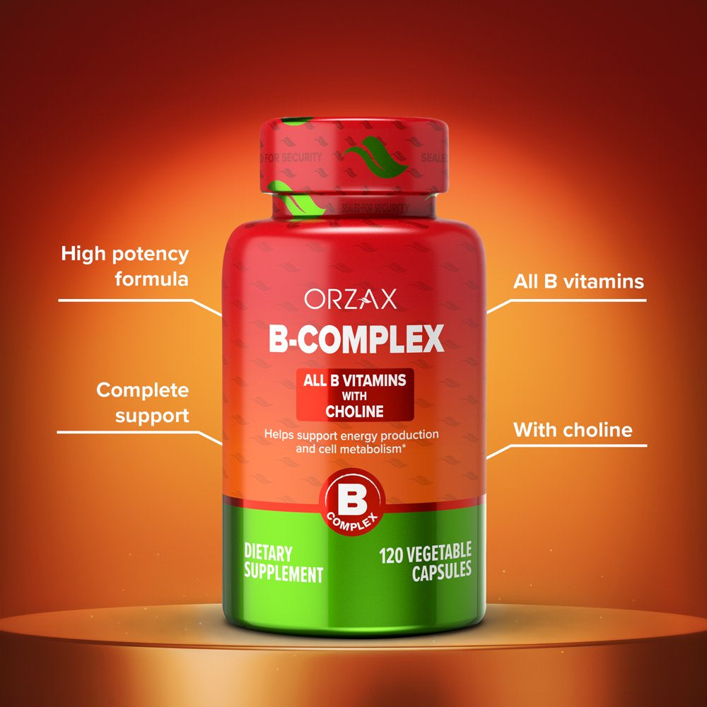 ORZAX Vitamin B Complex, B Vitamins with Choline & Inositol - 120 Vegetable Capsules