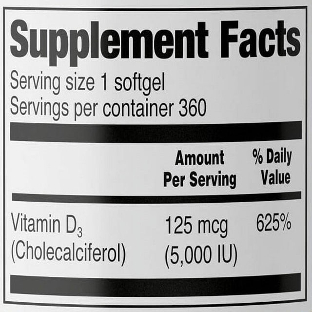 ORZAX Vitamin D3 5000 Iu, 360 Days Supply, 125 Mcg Vitamin D3 Mini Softgel, 360 Count is backordered and will ship as soon as it is back in stock.