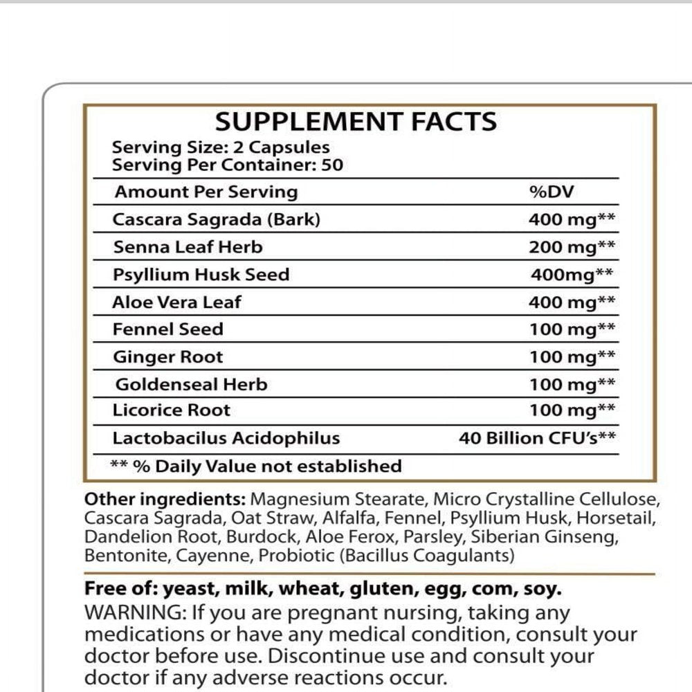 Parasite Cleanse DETOX Liver Colon Yeast Blood Support COLON CLEANSER TEA - 100 Capsules(Pack of 2) help increase energy, alleviate bloating. It helps cleanse toxins and helps support healthy bowel movements