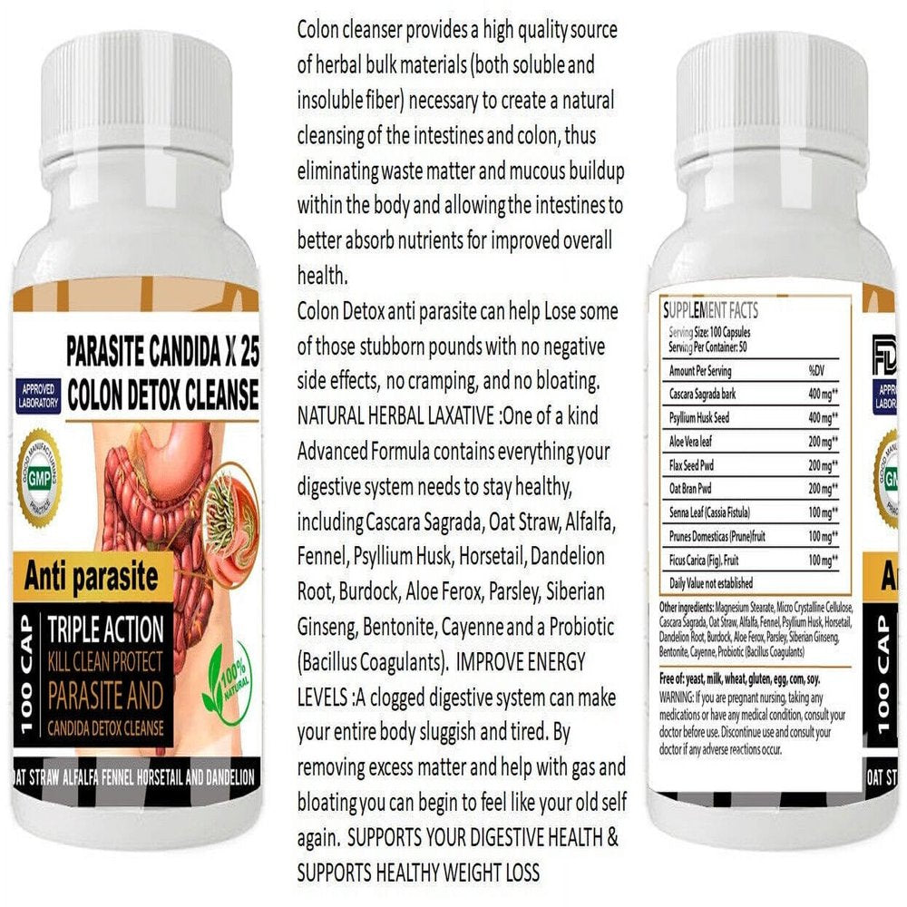 Parasite Detox Clean COLON Flush & Cleanse Parasite Cleanse Candida Support 100 Capsule