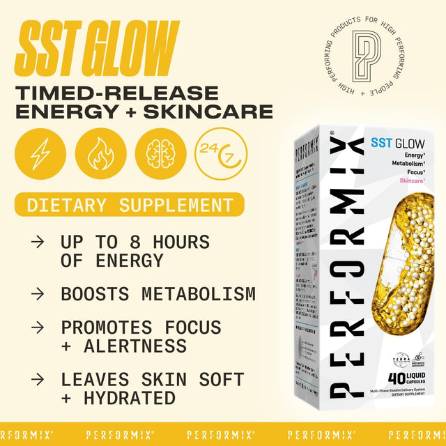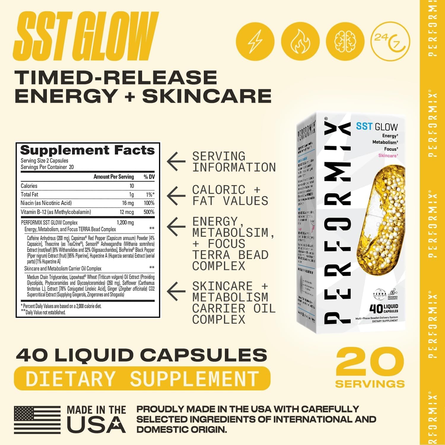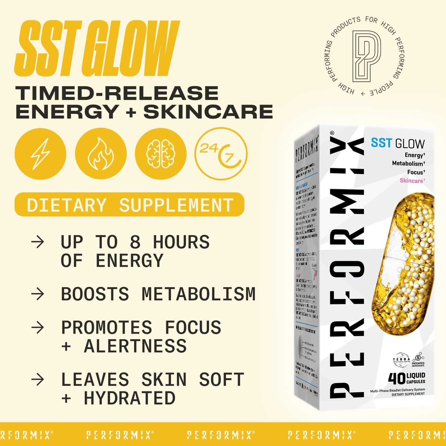 PERFORMIX - SST Glow with Capsimax - Enhanced Energy, Focus & Skin Hydration - Fitness Goals - Metabolism Booster - Wellness - Pre Workout for Women - Thermogenic Supplement - 40 Capsules
