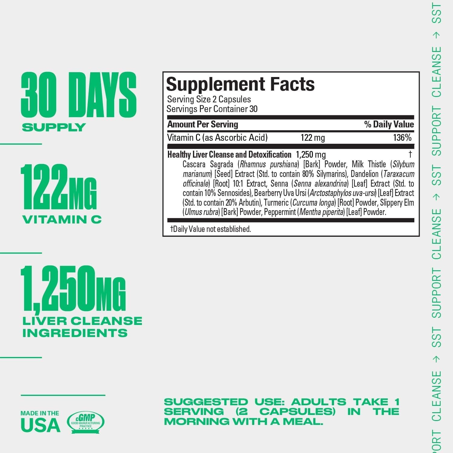 - Detox: SST Support Cleanse helps protect the liver from toxins while supporting your daily health and performance through Milk Thistle, Turmeric and other ingredients.. 60 capsules per pack.