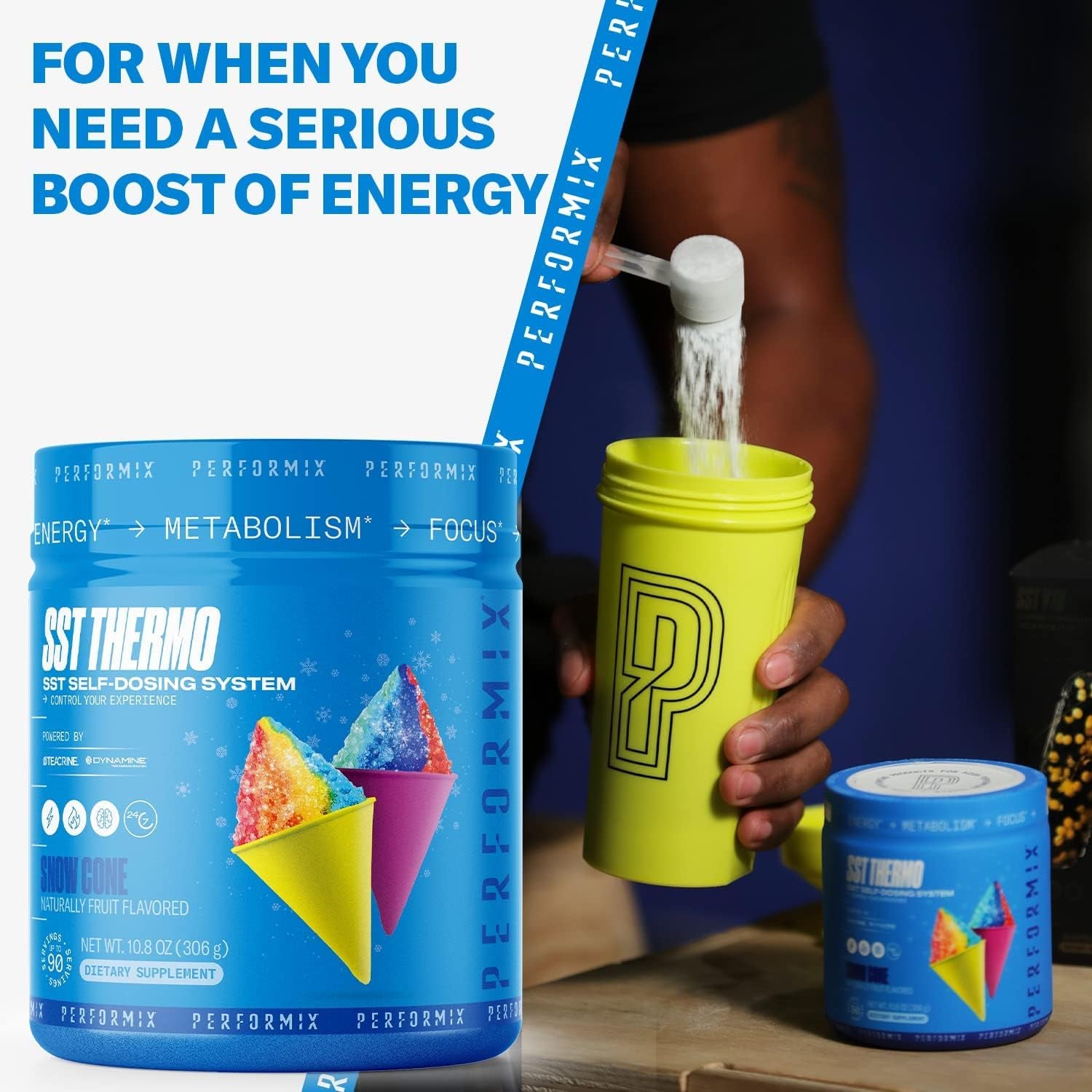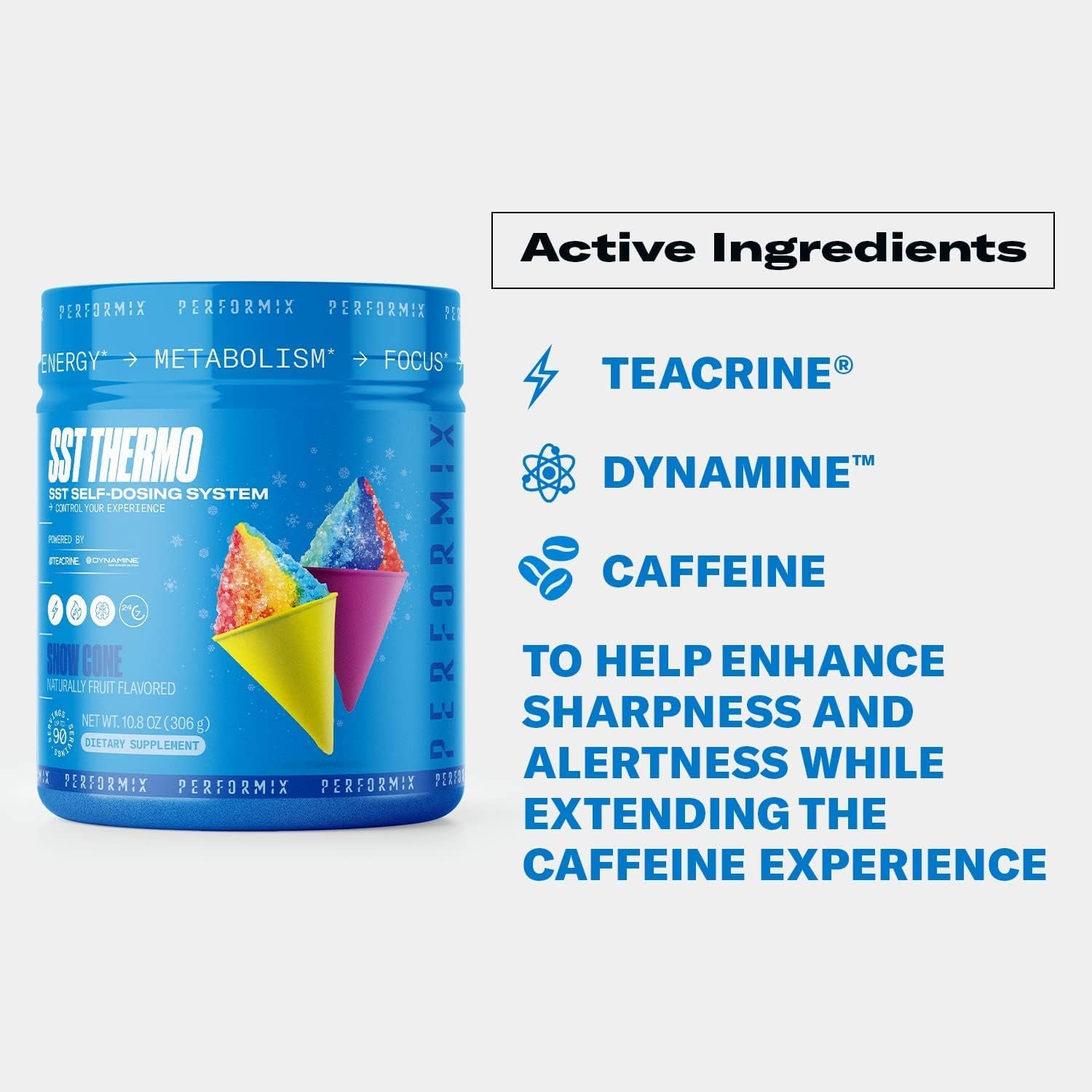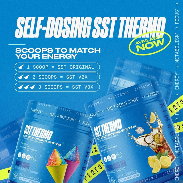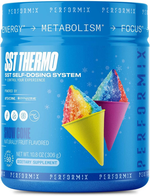 PERFORMIX SST Thermo Dietary Supplement - Snow Cone, Naturally Flavored - SST Self-Dosing System for Energy, Metabolism, and Focus - Powered by Teacrine and Dynamine (Up to 90 Servings)