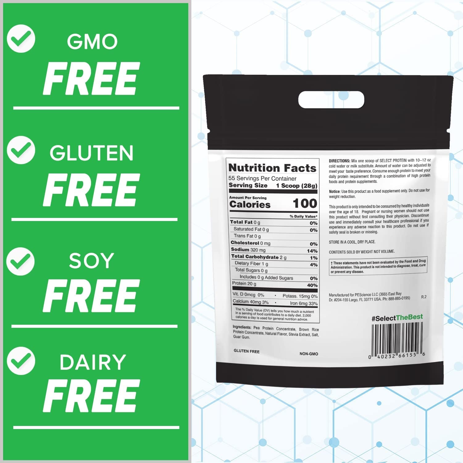 - PREMIUM PEA AND BROWN RICE PROTEIN BLEND - Select Vegan offers a full amino acid spectrum and 20g of complete protein per serving!