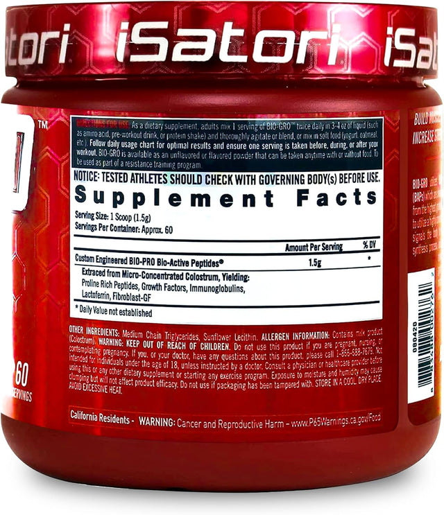 - Maximum Protein Synthesis: BIO-GRO delivers 1.5 grams of Micro-Concentrated Bio Pro Bio-Active Peptides per serving. Sugar Free, Gluten Free and Stimulant Free