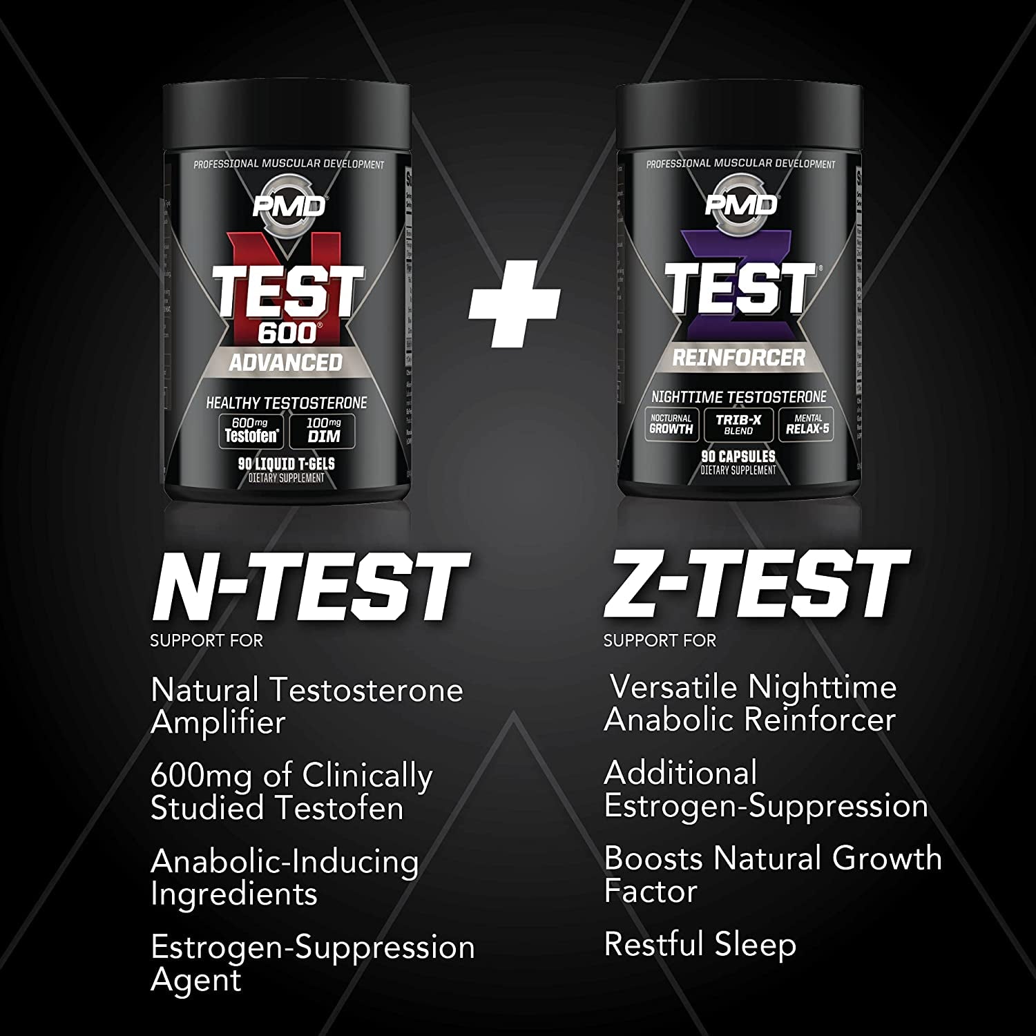 PMD Sports Flex Stack Advanced 24-Hour Testosterone Stack for Lean Muscle Growth, Strength, Recovery, Libido and Restful Sleep - N-Test 600 Advanced / 90 Liquid T-Gels, Z-Test 90 Capsules …