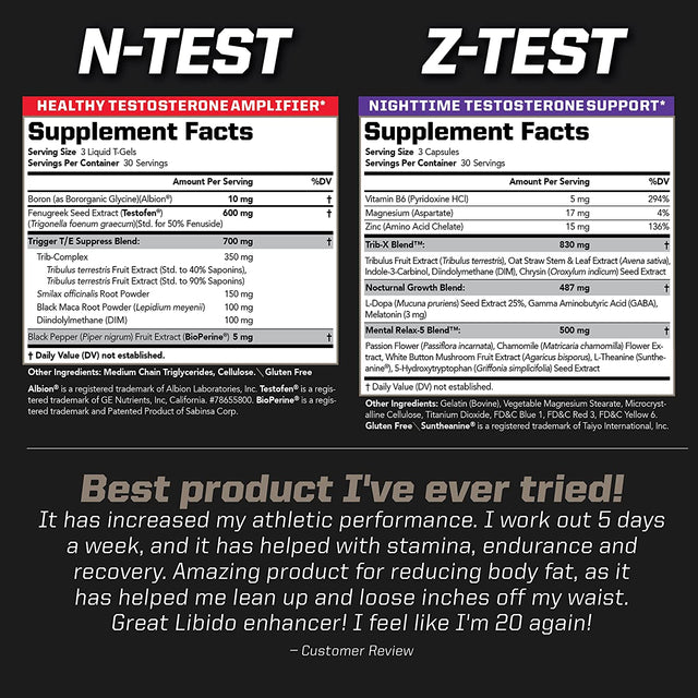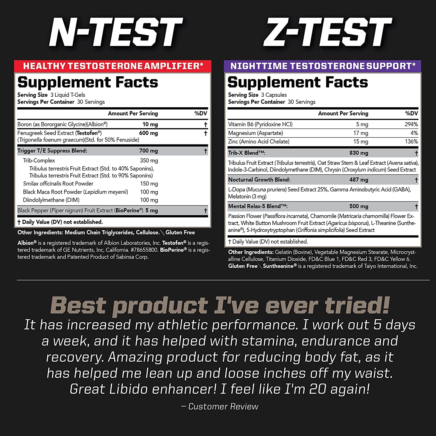 - Suppress Estrogen: N-TEST 600 ADVANCED is loaded with 100 mg of Diindolylmethane (DIM), which is designed to block the estrogen receptors activity and interfering with them to help raise the ratio of testosterone to estrogen. With DIM causing more testosterone to be freed, the results can help support a stronger capacity to build muscle from workouts, a higher sex drive, better moods, and improved health. Z-TEST’s formulation helps block estrogen, which helps to avoid the negative and adverse an
