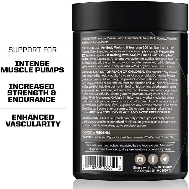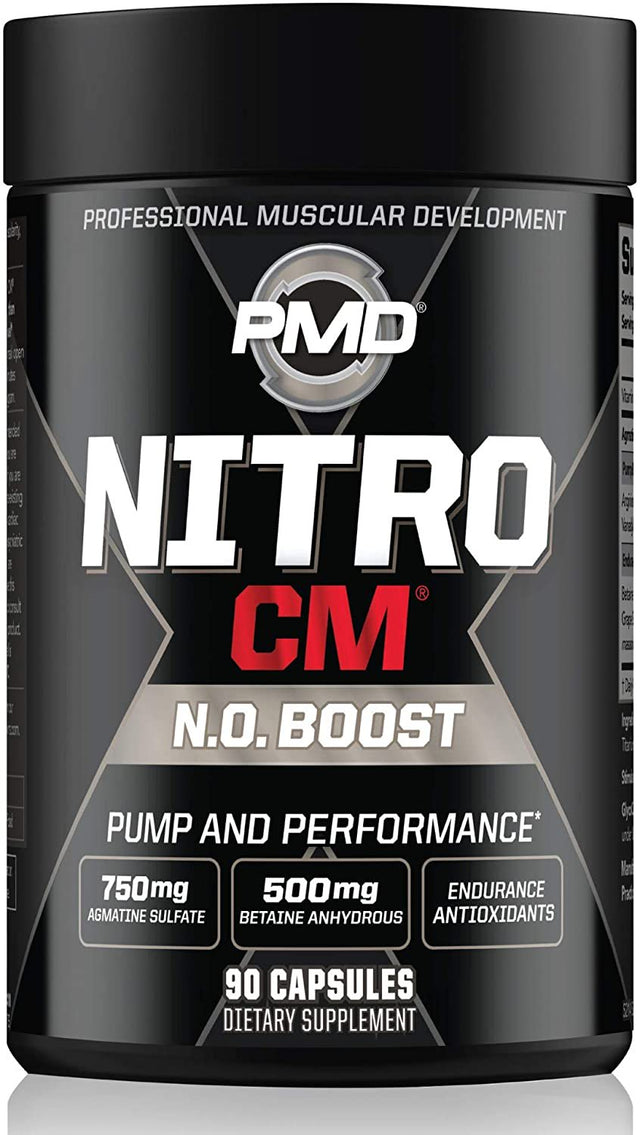 PMD Sports Nitro Cm - Nitric Oxide with Agmatine Pre Workout Supplement - Muscle Growth Pre-Workout with L Arginine - Endurance Boost for Hardcore Exercise, Training, and Bodybuilding - (90 Capsules)