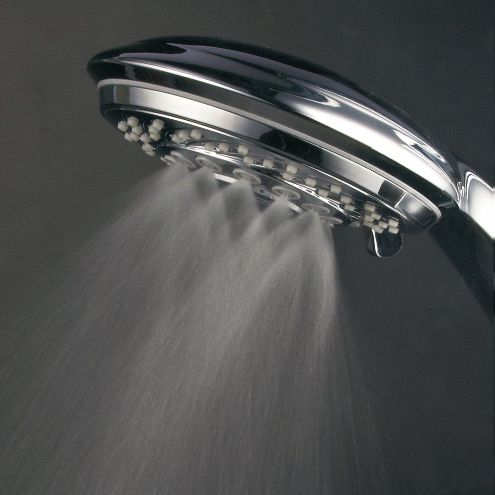 Finally, water conservation without sacrifice. This state-of-the-art hand shower makes saving water practical and convenient without giving up the enjoyment, speed and hydrotherapy benefits of a high-power shower. Its patented Pause switch allows you to turn water off when lathering, shampooing or shaving, then restore it instantly to full power and pre-set temperature. Striking spiral-design chrome face features advanced three-zone dial that delivers an array of luxurious flow patterns with high power and precision. Pamper yourself with drenching Power Rain, rejuvenating Pulsating Massage or gentle Hydrating Mist to keep you warm while lathering and shampooing. You can also use soft Economy Rain to save water when full power is not needed. Extra-long 72-inch hose adds reach and mobility for your total shower convenience.