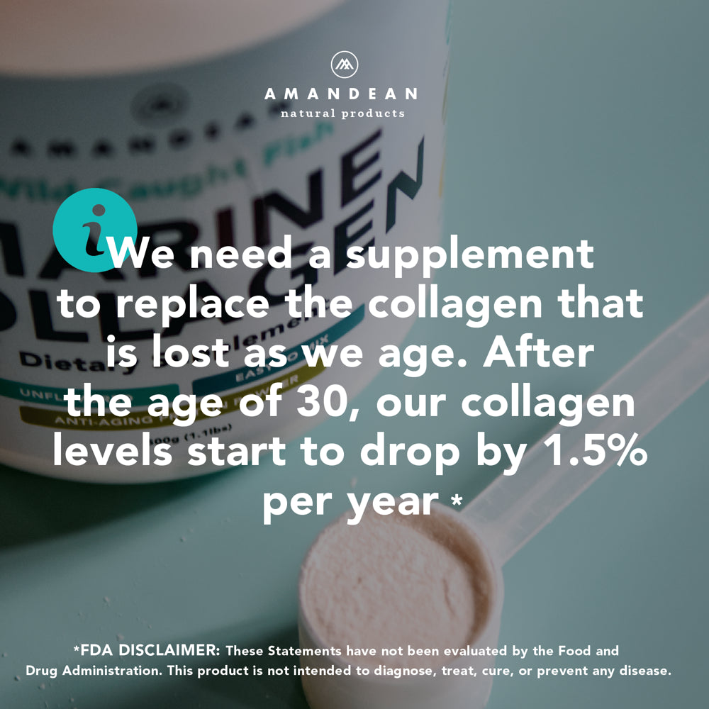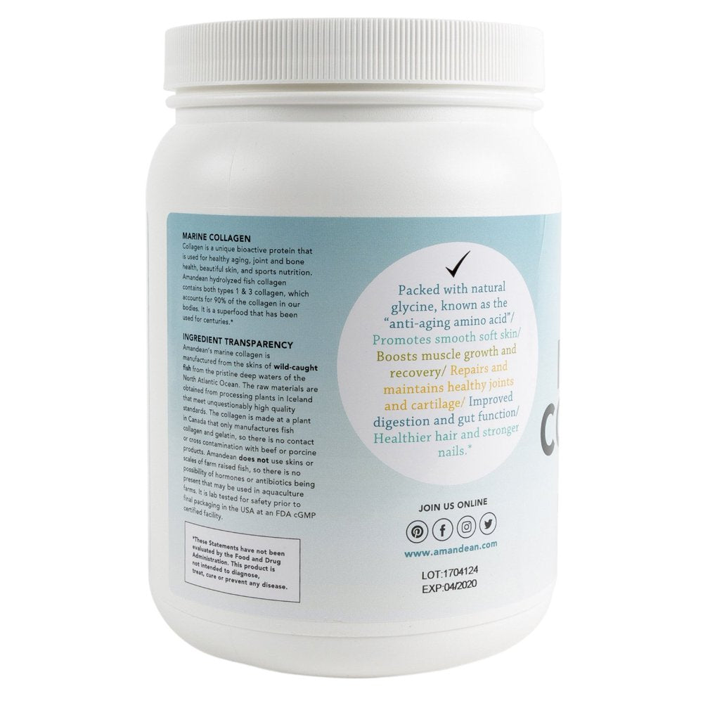 - Supports skin health from the inside-out: Marine collagen is known to support skin health, including improving skin elasticity, managing the appearance of fine lines and wrinkles, and promoting a youthful glow. Amandean Marine Collagen can help to nourish and strengthen the skin from the inside out.