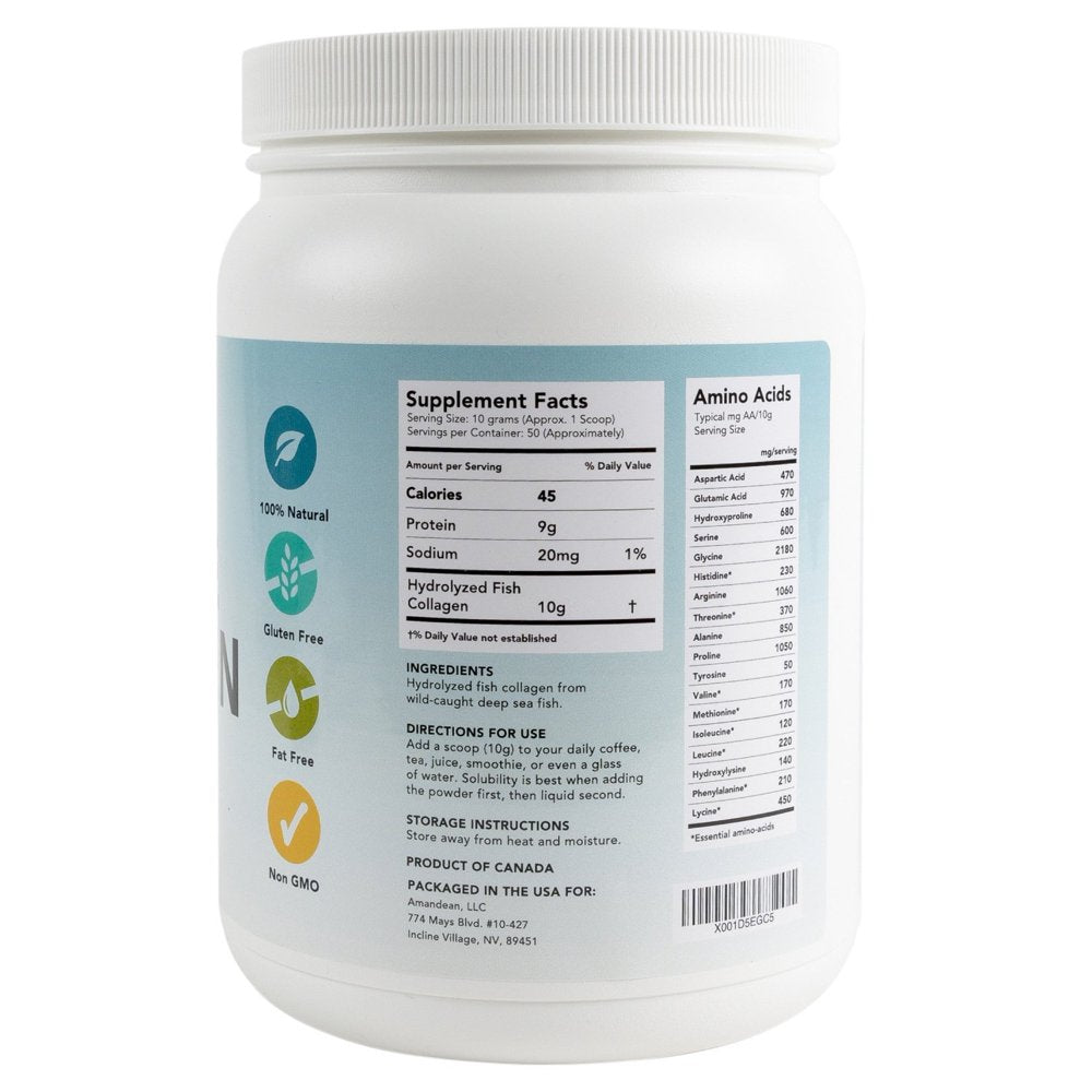 HIGHEST QUALITY & GREAT PRICE Amandean Marine Collagen Peptides are sourced from wild-caught fish in the pristine waters of the North Atlantic. Unflavored, easy to mix powder, and enzymatically processed to keep the peptides intact. Single ingredient from a transparent and sustainable source.