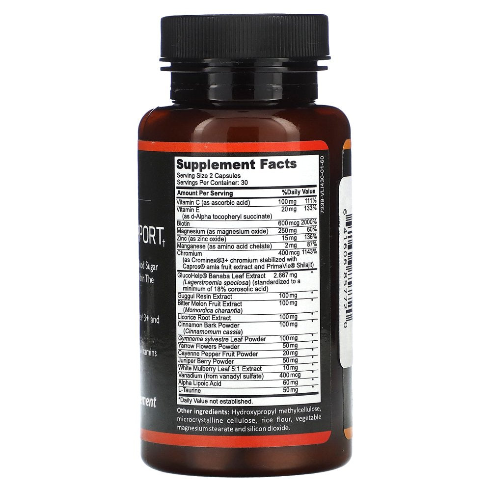 Helps Maintain Blood Sugar Levels Already within the Normal Range Features Crominex® 3+ and GlucoHelp® Powerful Herbs & Vitamins Dietary Supplement Our Blood Sugar Support Supplement is made with high quality herbs and vitamins. There are over 15 ingredients in our Blood Sugar Support Capsules including Cinnamon, Vanadium, Chromium, Biotin and Guggul. We use Glucohelp®, which is standardized to 18% corsolic acid to help maintain blood sugar levels already within normal range. This unique blend provides a wide variety of herbs and vitamins.