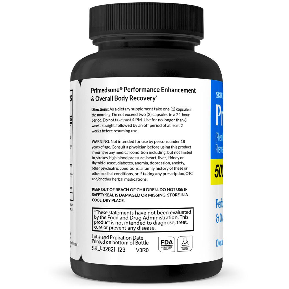 - Pharmaceutical Grade OTC (Over-the-counter): Made in an FDA & GMP certified manufacturing facility. Primedsone is formulated with the highest quality over-the-counter ingredients which are third-party tested by an ISO17025 accredited laboratory. Primedsone does not require a prescription to obtain.*