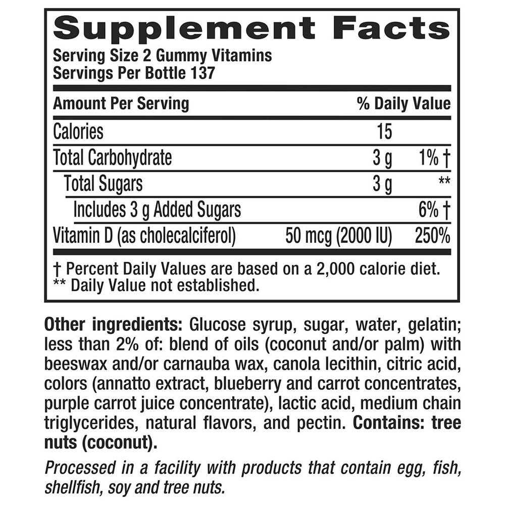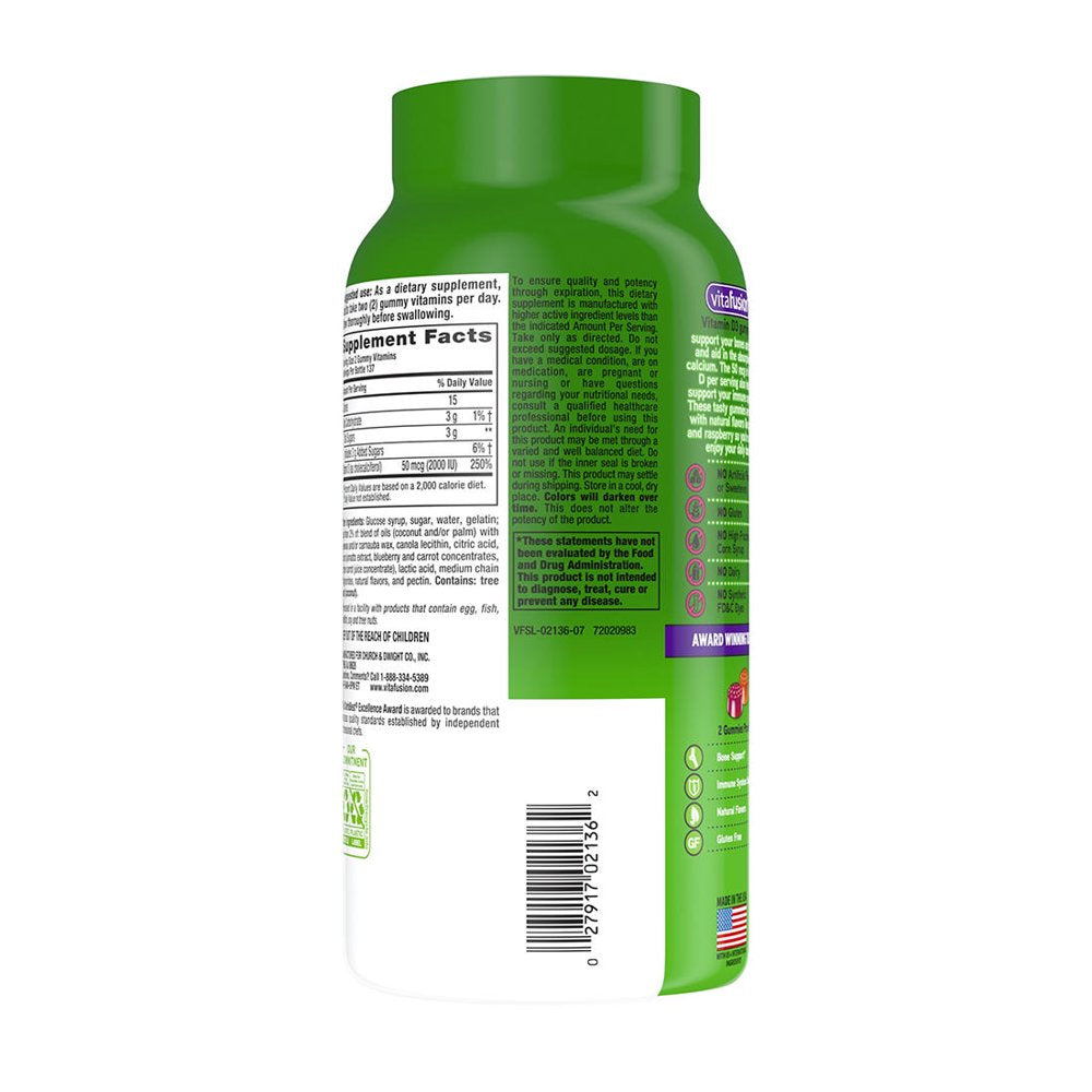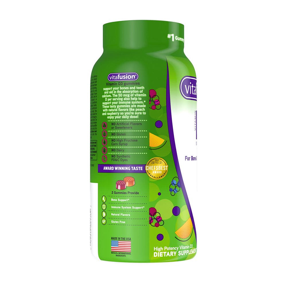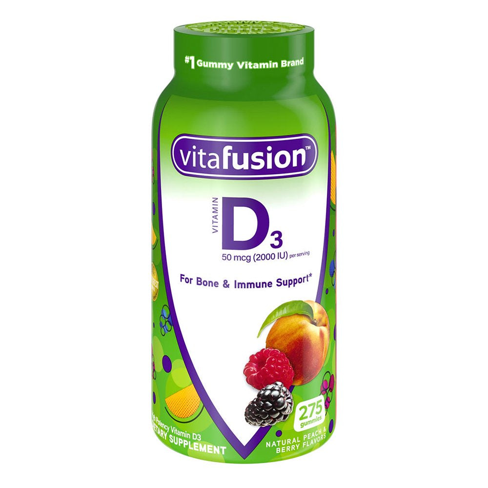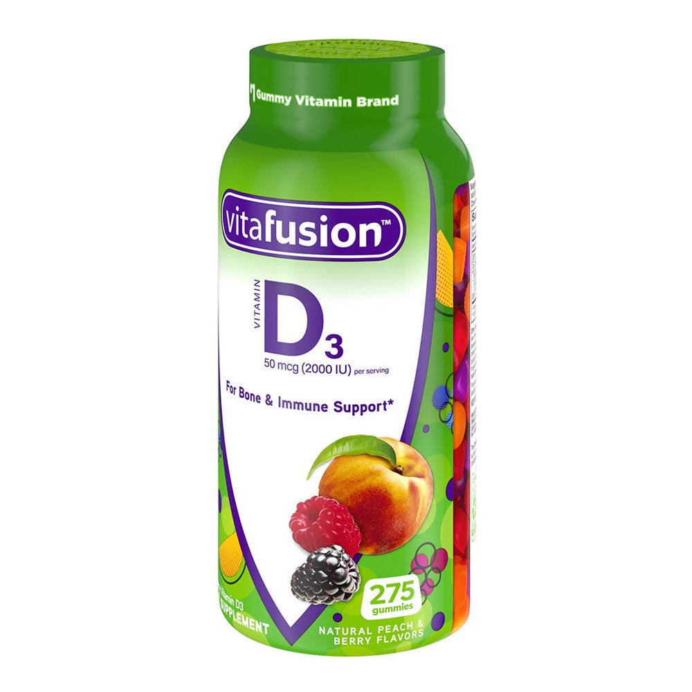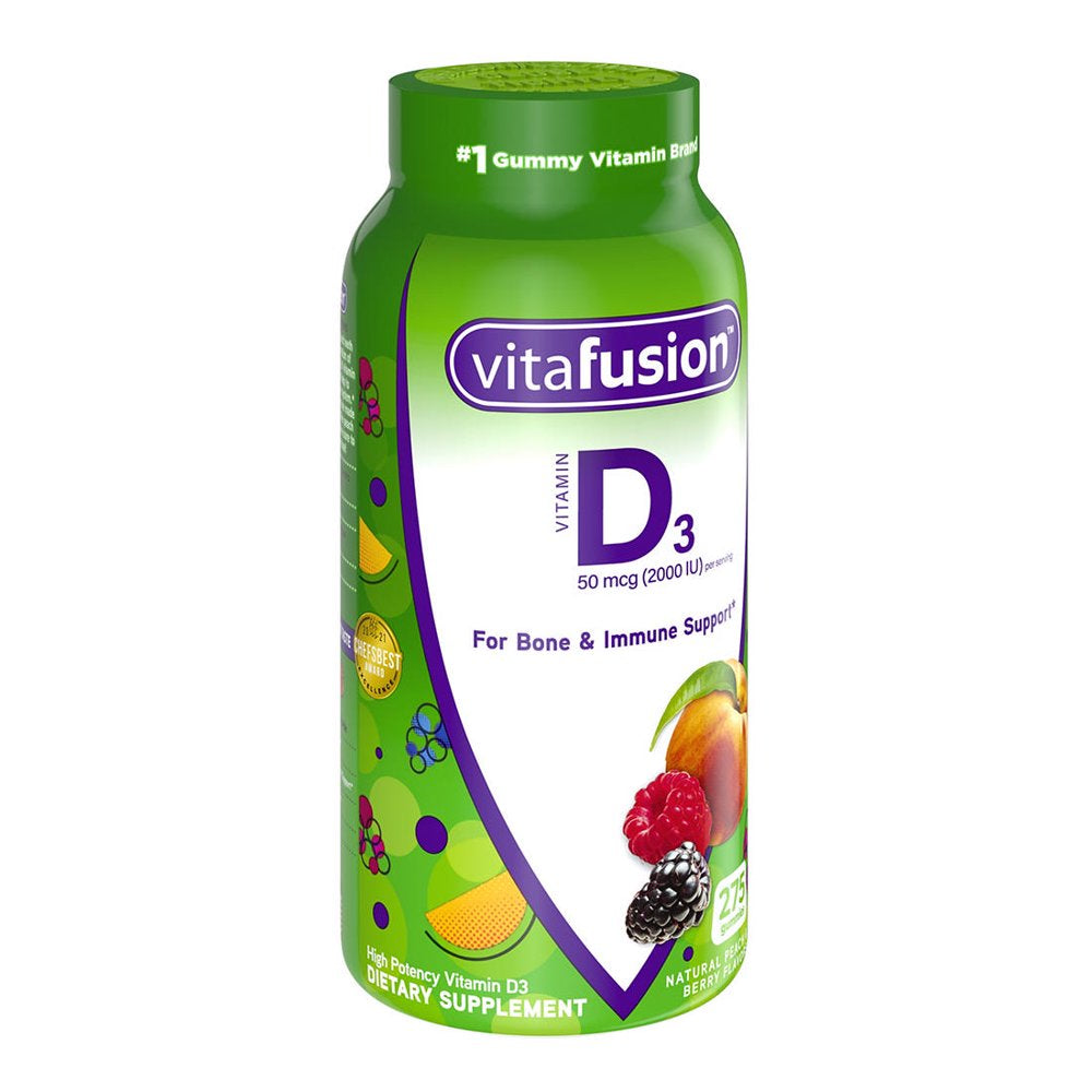 Product of Vitafusion Vitamin D, 275 Ct. Vitafusion Vitamin D is a 2000 iu high potency Vitamin D supplement. This vitamin is great for supporting bone and teeth health. Naturally fruit flavored, this value size includes a 275-count of VItamin D. Each serving of vitafusion Vitamin D3 supports bones and teeth, as well as the immune system. Vitamin D, also known as the sunshine vitamin aids in the absorption of calcium to help support strong bones and teeth