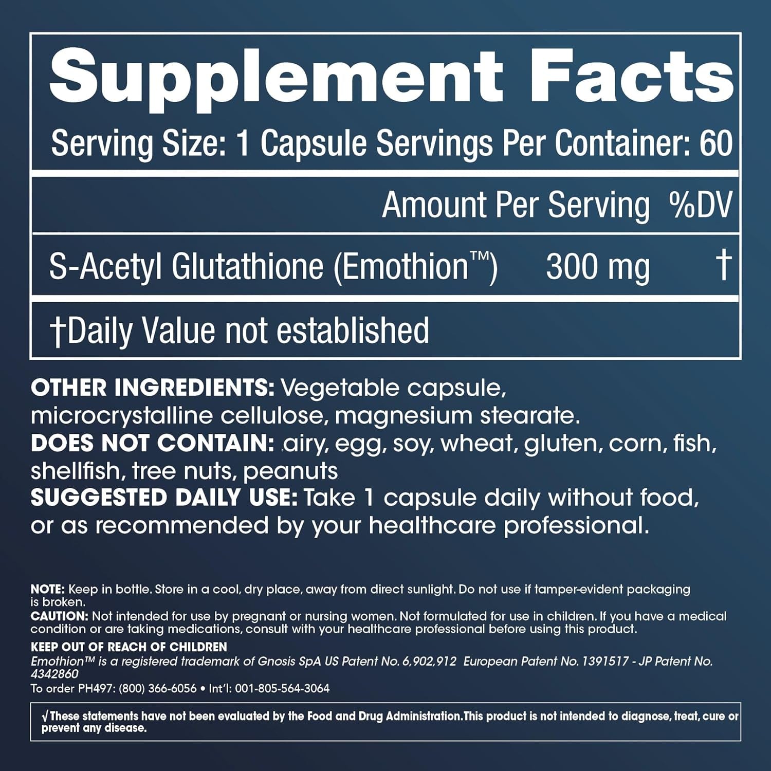 S-Acetyl Glutathione from ProHealth is an acetylated form of glutathione. This form is well-absorbed and more stable throughout the digestive tract than other forms on the market. *These statements have not been evaluated by the Food and Drug Administration. This product is not intended to diagnose, treat, cure or prevent any disease. Individual results may vary.