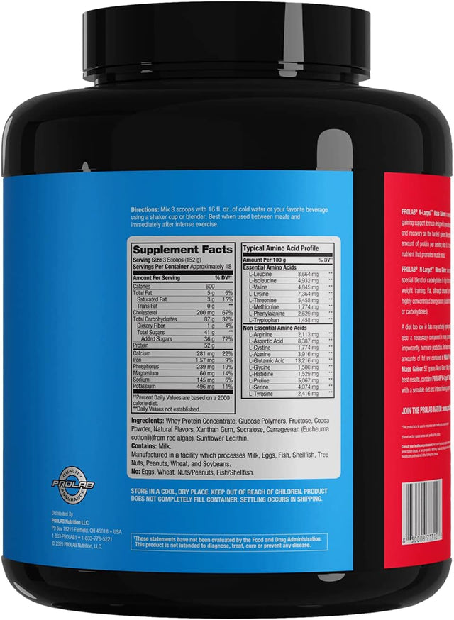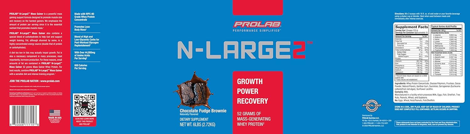 Prolab N-Large2 Mass Gainer - Powerful Mass Gaining Support Formula - Promotes Muscle Size, Growth, and Recovery - New (Chocolate Fudge Brownie, 6 LB) - Chocolate Fudge Brownie / 6 Pound is backordered and will ship as soon as it is back in stock.