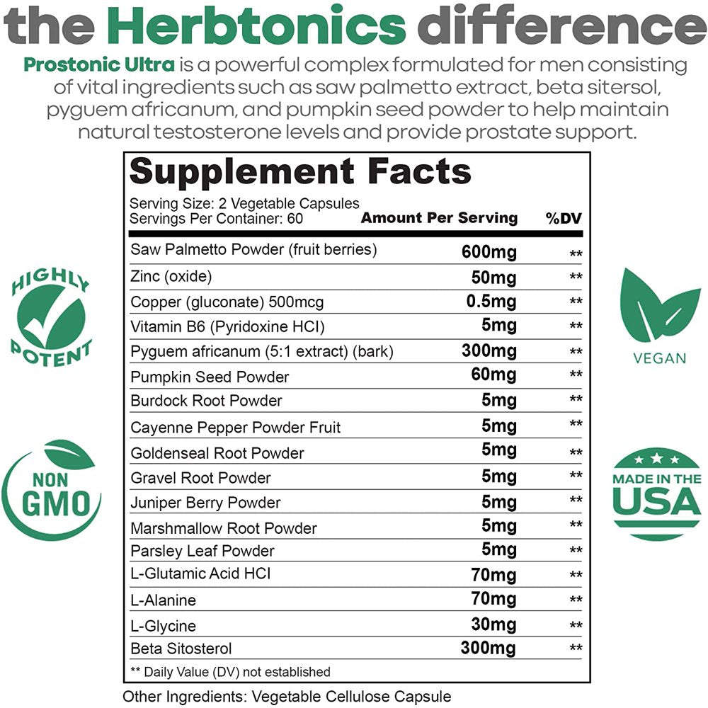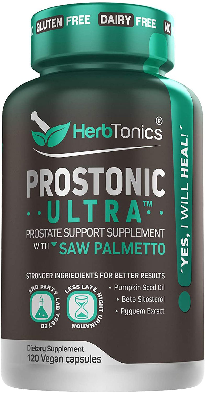 Herbtonics comes from the ancient words “herb” and “tonic.” The Latin word “herb” describes a plant valued for its medicinal properties, whereas the Ancient Greek word “tonic” describes a medicine intended to restore. Together we have formed "Herbtonics" to promote all-natural methods of using herbs to restore and inspire optimal health through innovation. At Herbtonics, we provide supplements containing authentic ingredients powered by ground-breaking science aimed at helping you achieve a new level of well-being — one that will make you say, “Yes, I will heal!” Research indicates that saw palmetto may help increase testosterone levels, improve prostate health, reduce inflammation, prevent hair loss, and enhance urinary tract function. Prostonic Ultra by Herbtonics is a unique and powerful blend of vital ingredients such as saw palmetto extract, beta sitersol, pyguem africanum, and pumpkin seed powder. PURPOSE: Prevents Hair Loss & Decreases Inflammation. Improves Urinary Tract Function. Supports Prostate Health. Regulates Testosterone Levels. SCIENCE: Saw Palmetto: It is extracted from the Serenoa repens plant and used as a supplement that helps in naturally maintaining testosterone levels. Beta Sitersol: Commonly found in different fruits and vegetables, this ingredient is used for lowering cholesterol and promoting prostate health. Pyguem Africanum: Extracted from the African Prune tree, this herb boasts numerous benefits concerned with prostate health. Pumpkin Seed Powder: It is used as a source of Vitamins B and E, Iron as well as minerals. Many prefer Pumpkin Seed Powder as it helps with insomnia and assists in improving prostate health.