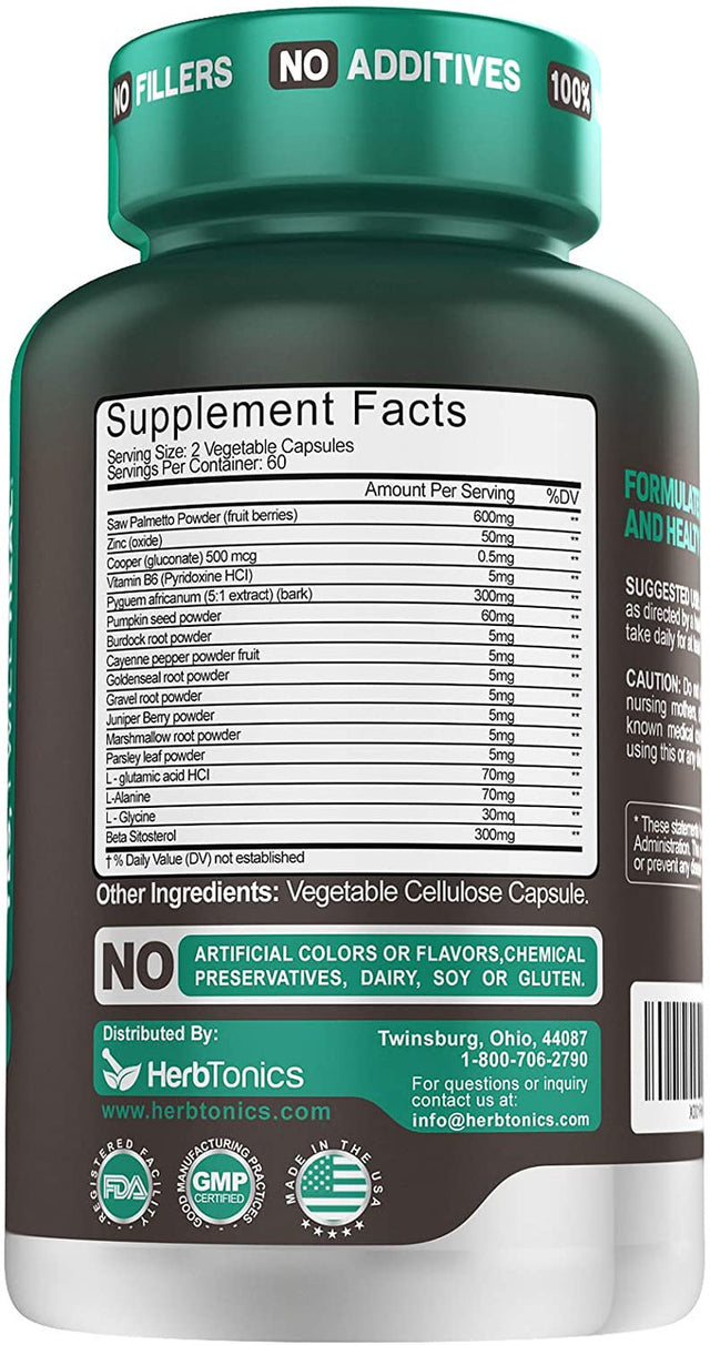 | Product Name | Prostate Support Supplement for Men's Health with Saw Palmetto Beta Sitosterol, Pumpkin Seed, Pyguem, Bladder & Less Urination - Men Prostate Health DHT Blocker 120 Vegan Pills Capsules |