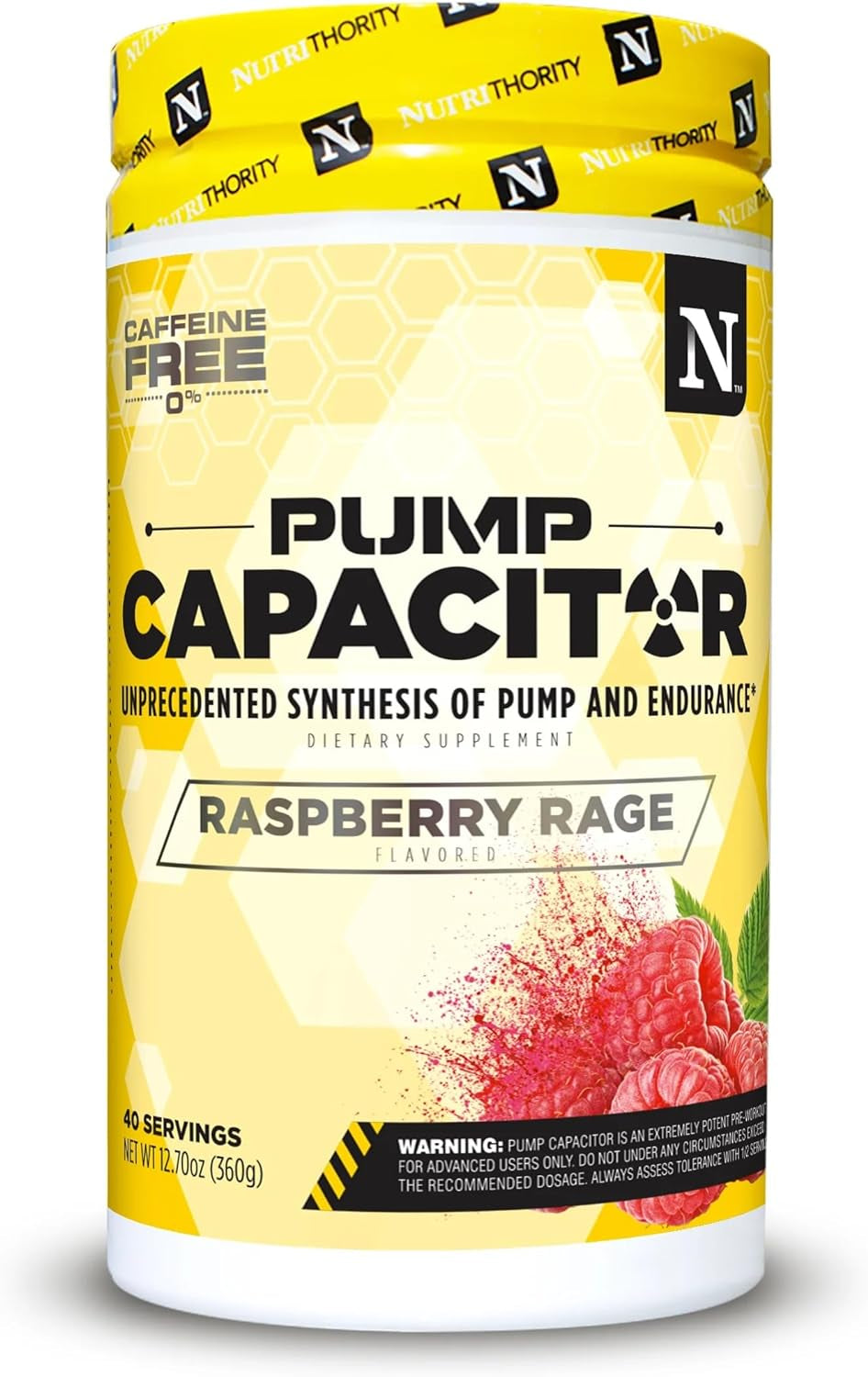 DELICIOUS AND QUICK HITTING PUMP MATRIX, PUMP CAPACITOR BY NUTRITHORITY! What does Pump Capacitor do? No stimulants (caffeine) Improved focus Increased Nitric Oxide production Improved blood flow to the muscle Decreased muscular fatigue Increased endurance and muscular performance Who is it for? Pump Capacitor is the perfect product for anyone looking to avoid stimulants or caffeine but still wanting the benefits of a pre-workout on performance, endurance, and blood flow. What will I notice? A bit of tingling from the beta-alanine. Improved recovery from set to set, improved endurance, increase blood flow, and better recovery after your workout. All of the same benefits from Mr. Fusion, but without the caffeine. Package Contents: (1) Tub of Nutrithority Pump Capacitor Product Details: Size: 25oz PET Bottle Serving Size: 1 Scoop Servings Per Container: 40 Non-Stimulant Pre Workout Flavors: Grape Lime, Raspberry Rage, Raw Unflavored, and Capsule Form At Nutrithority, we stand for nothing but the best. Our premium Pump Capacitor Pre Workout combines effective endurance and pump aiding ingredients for maximum performance. To add our powdered drink mix to your workout routine, mix 1 scoop into 6 to 8 ounces of water 10-20 minutes before your workout.