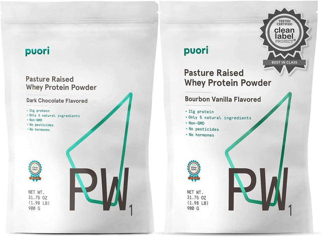 - PW1 WHEY PROTEIN POWDER VANILLA and DARK CHOCOLATE BUNDLE: This Puori grass-fed protein powder bundle features the Clean Label Project Purity Award-winning, PW1 Whey Protein Powder Vanilla flavor, and PW1 Whey Protein Powder Dark Chocolate flavor. Many protein supplements contain artificial sweeteners, additives, and unnecessary ingredients. We want products that only contain the essential building blocks for recovery. Each contains 1.98 lbs.