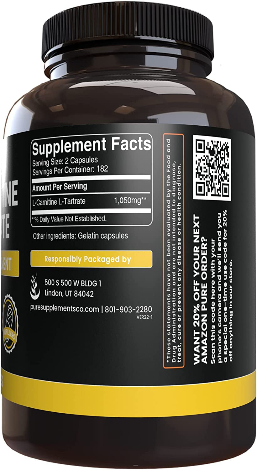 Pure Original Ingredients L-Carnitine Tartrate (365 Capsules) No Magnesium or Rice Fillers, Always Pure, Lab Verified