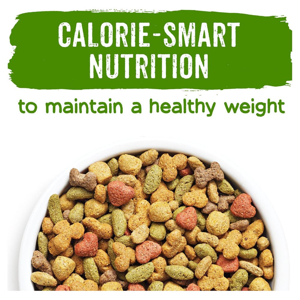 Give your dog(s) the taste they crave while keeping an eye on their weight with Purina Beneful Healthy Weight with Real Chicken Adult Dry Dog Food. This food has 10% fewer calories than Purina Beneful Originals with Real Beef and no added sugar. This premium adult dry dog food offers calorie-smart nutrition packed with all the taste your dog loves. Real farm-raised chicken is the number one ingredient, which adds a savory flavor to help deliver the protein needed to maintain lean muscles for an active frolic in the park, while delicious accents of real apples, carrots and green beans provide variety and wholesome goodness for your faithful friend. Feed your dog Beneful Healthy Weight with Real Chicken for 100% complete and balanced nutrition.