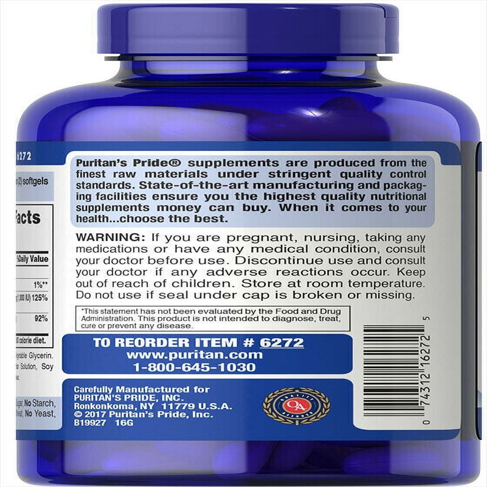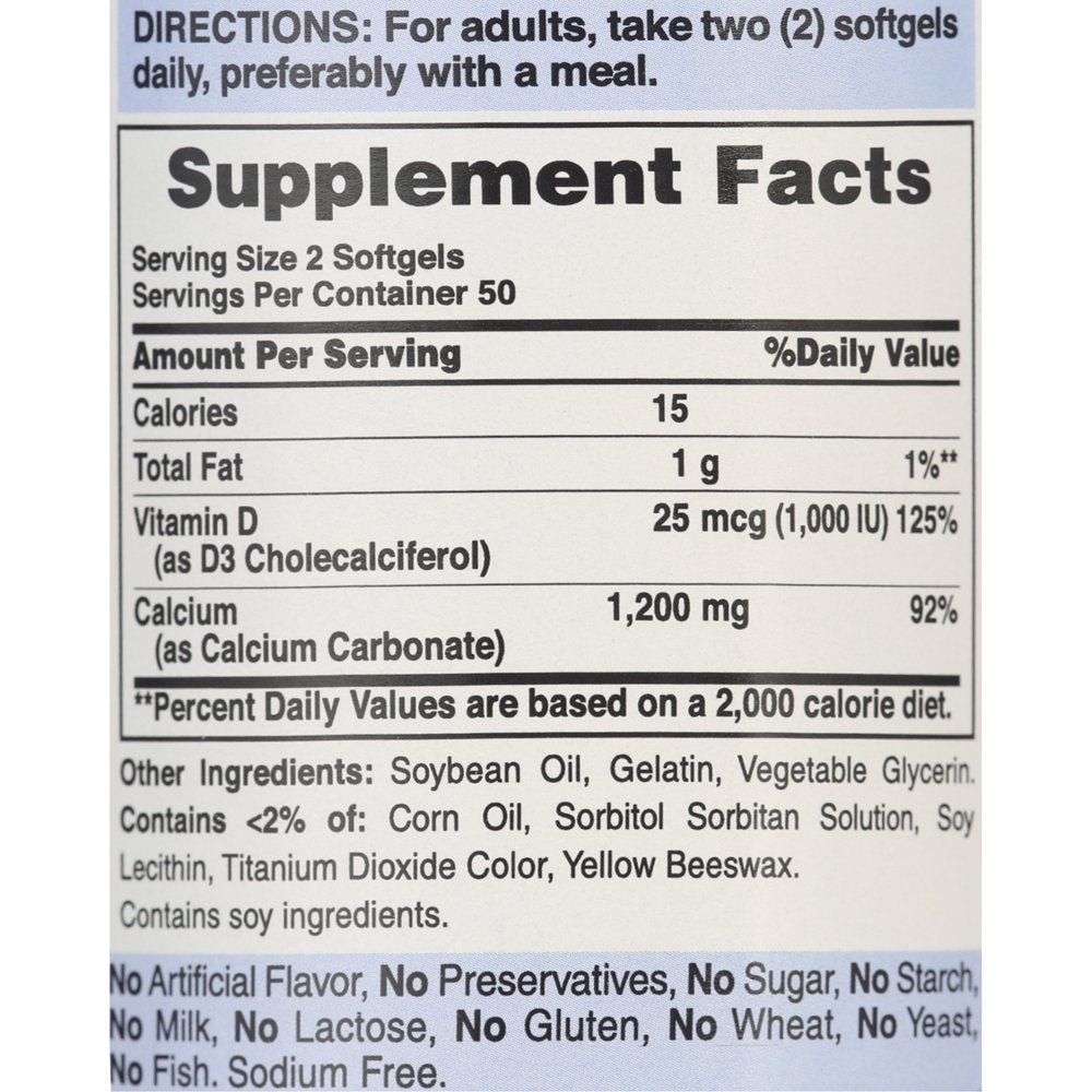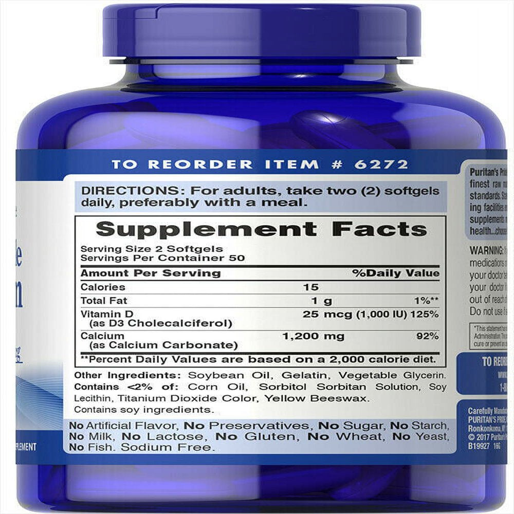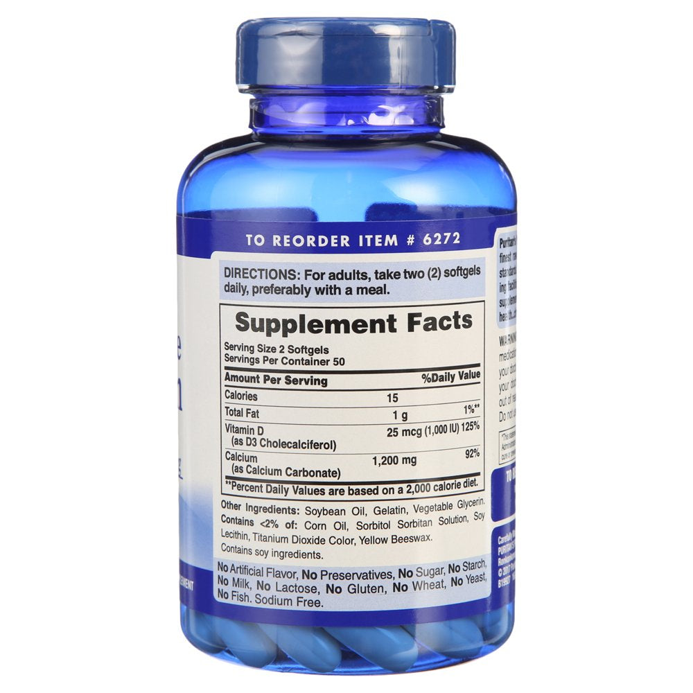 Puritan'S Pride Absorbable Calcium 1200 Mg with Vitamin D 1000 IU, 100 Softgels