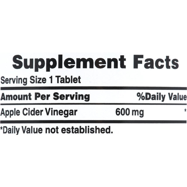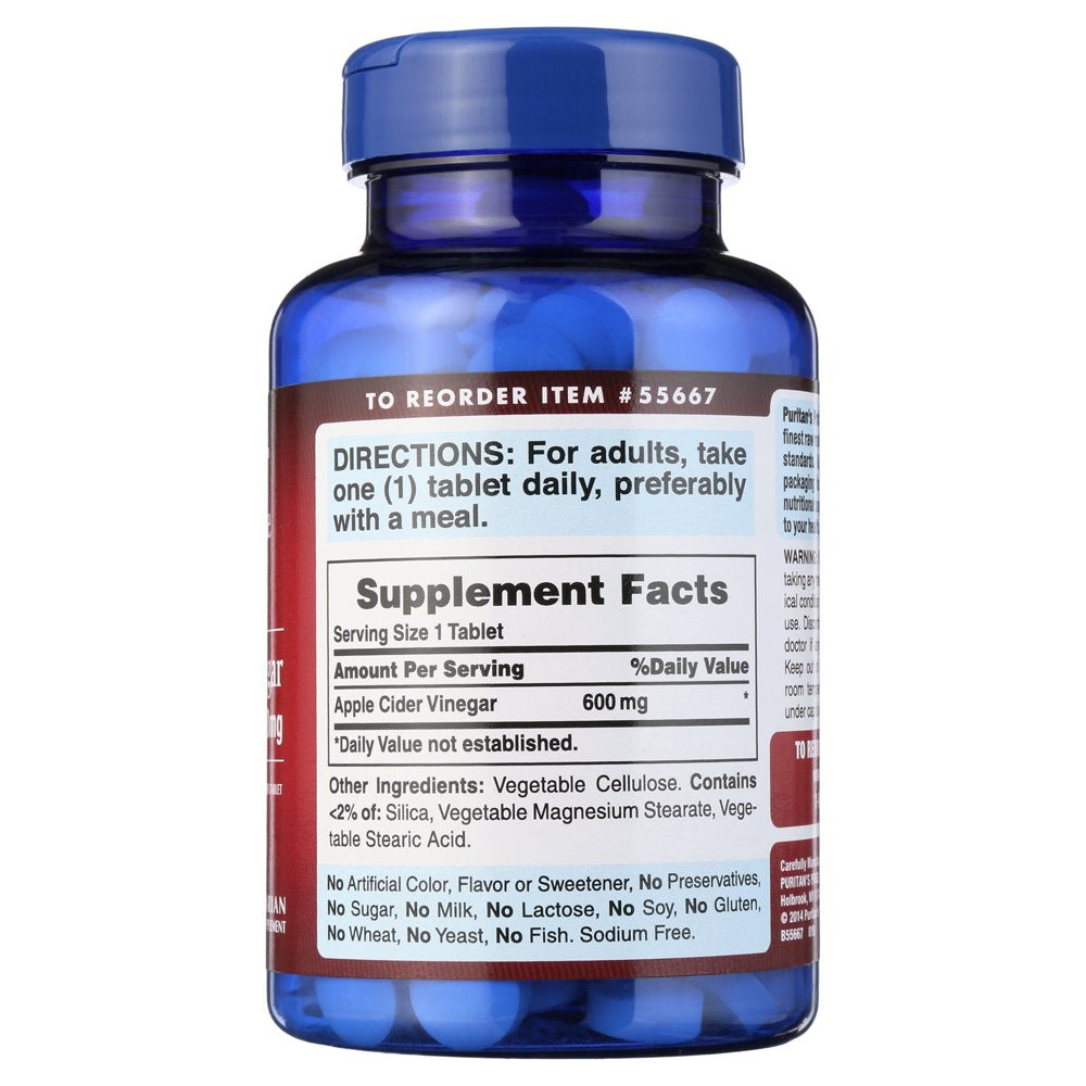 Puritans Pride Apple Cider Vinegar 600 Mg Tablets, 200 Count