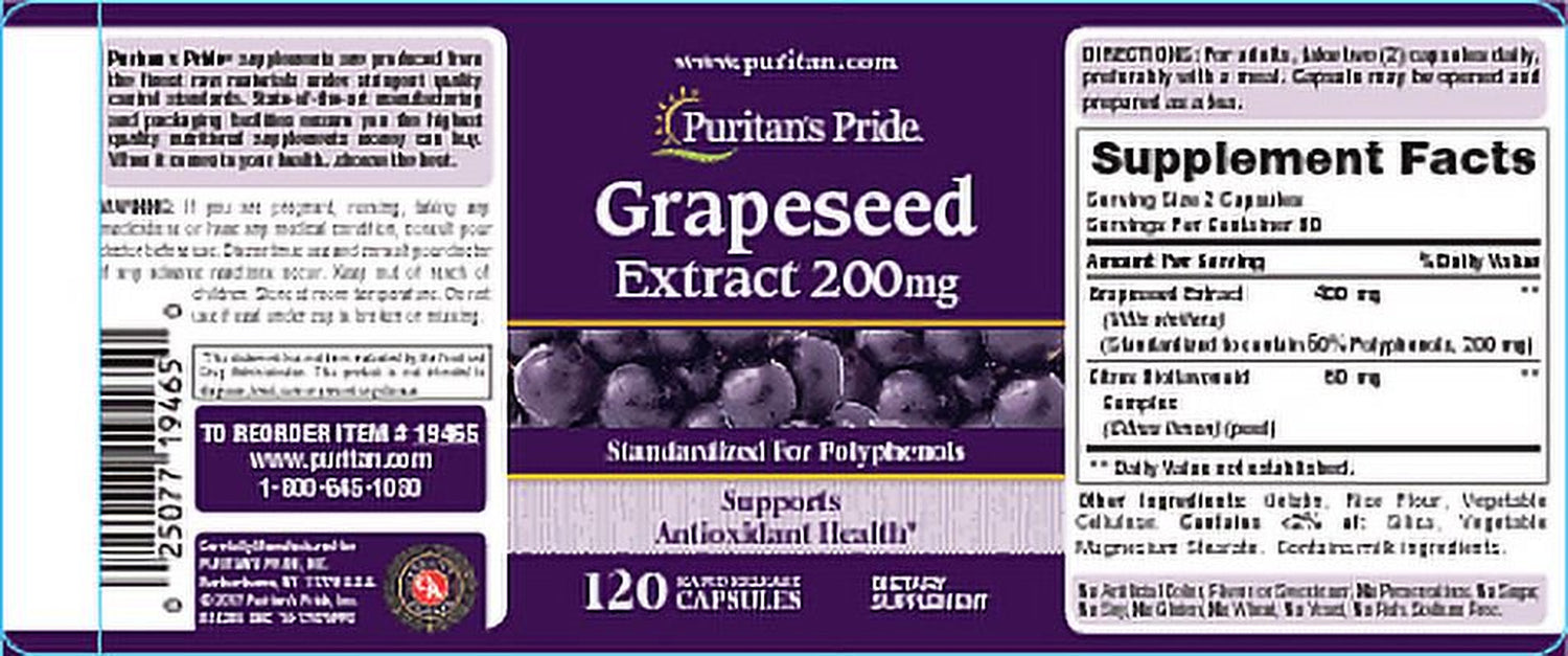Puritans Pride Grapeseed Extract 200 Mg Capsules, 120 Count