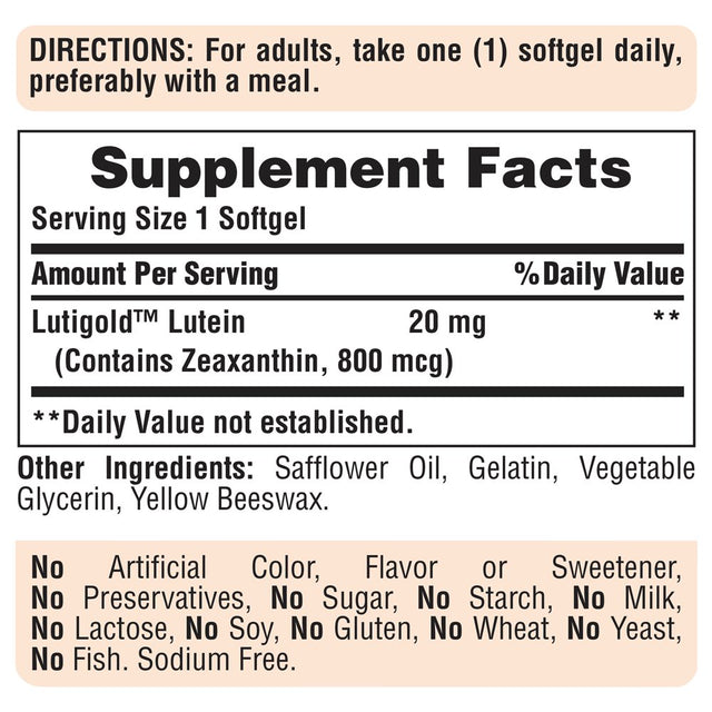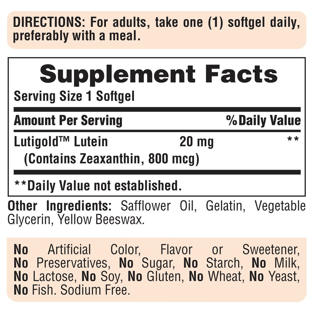 Puritans Pride Lutein 20 Mg with Zeaxanthin Softgels, 120 Count is backordered and will ship as soon as it is back in stock.