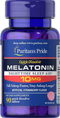 Puritans Pride Quick Dissolve Melatonin Strawberry Flavor Tablets, 10 Mg, 90 Count