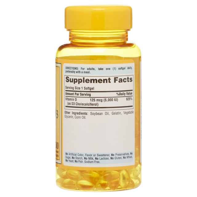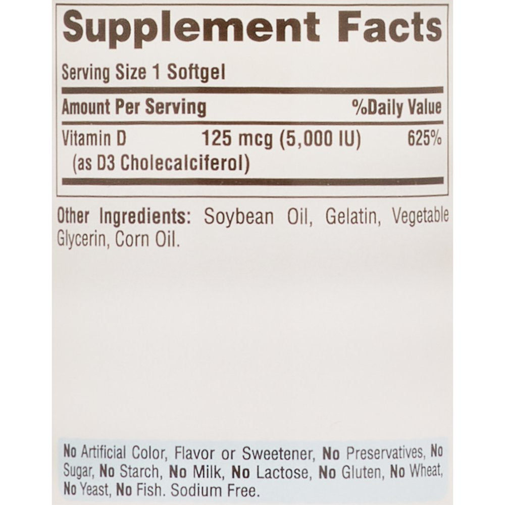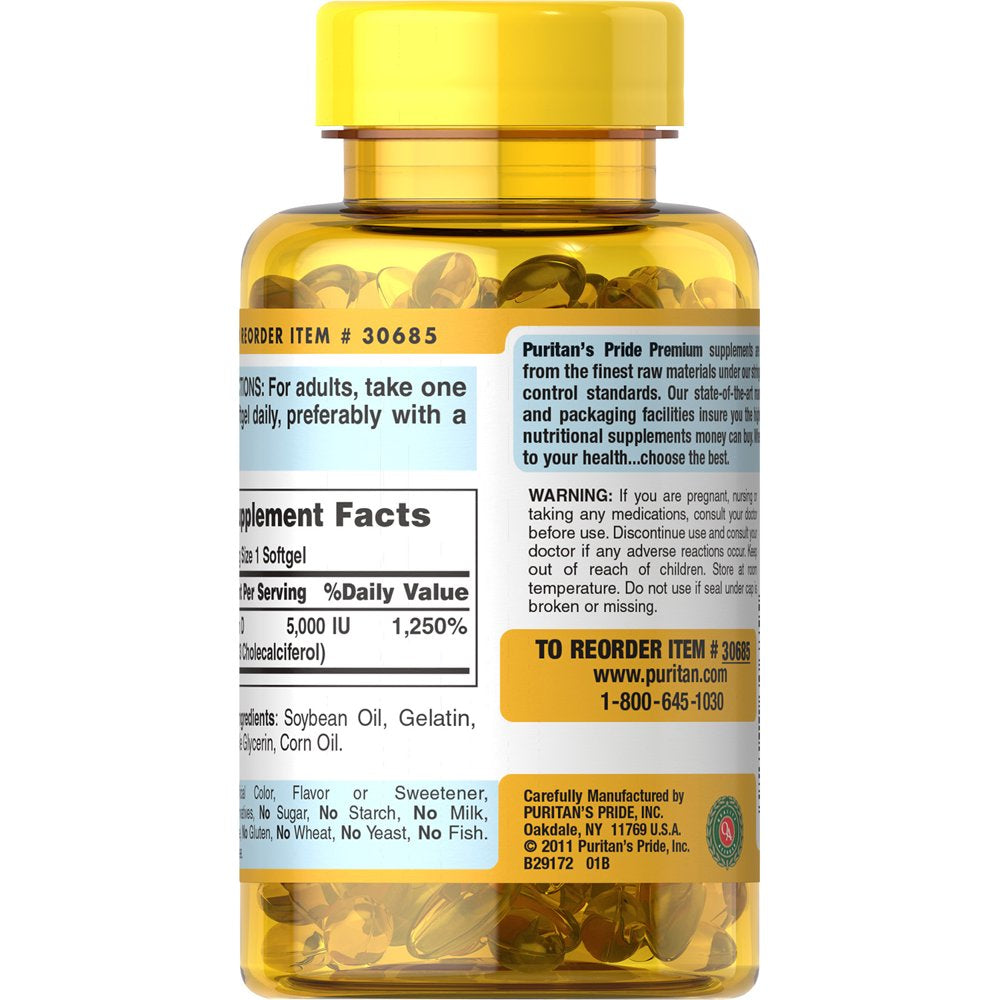 Puritans Pride Vitamin D3 5000 IU Softgels, 200 Count