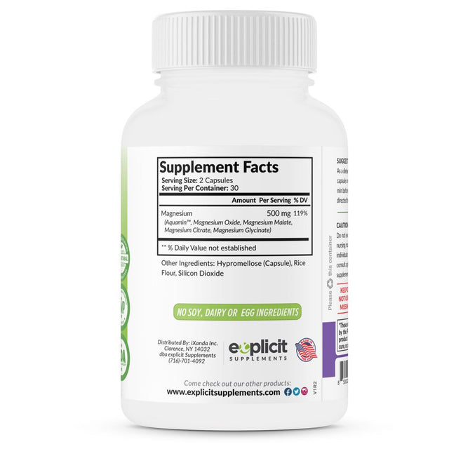 Quad Magnesium Complex Supplement - 500Mg of Magnesium Glycinate, Malate, Oxide & Citrate for Support of Muscles, Sleep, Energy & Relaxation - High Absorption with Aquamin - 60 Capsules is backordered and will ship as soon as it is back in stock.