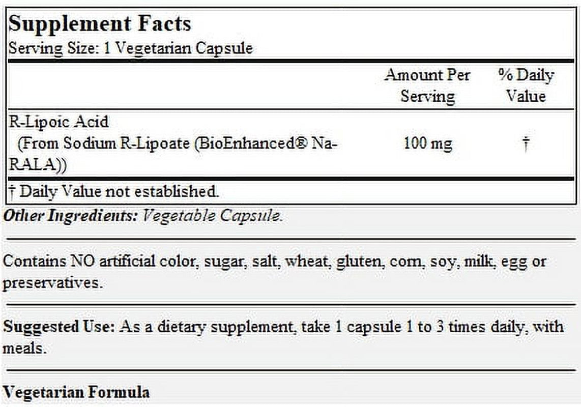 R-Lipoic Acid 100Mg Stabilized with Bio-Enhanced® Na-Rla (120 Vegetarian Capsules)