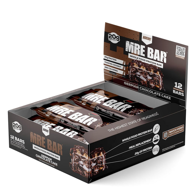 REDCON1 MRE Protein Bar, German Chocolate Cake - Contains MCT Oil + 20G of Whole Food Protein - Easily Digestible, Macro Balanced Low Sugar Meal Replacement Bar (12 Bars)
