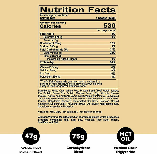 - Professional Grade Formula - REDCON1's MRE protein powders contain a whole food high protein blend of beef, salmon, chicken, egg, brown rice and pea protein powders. Each meal replacement protein powder shake is 530 calories with 47g of protein and only 5g of sugar in your new favorite meal replacement powder.