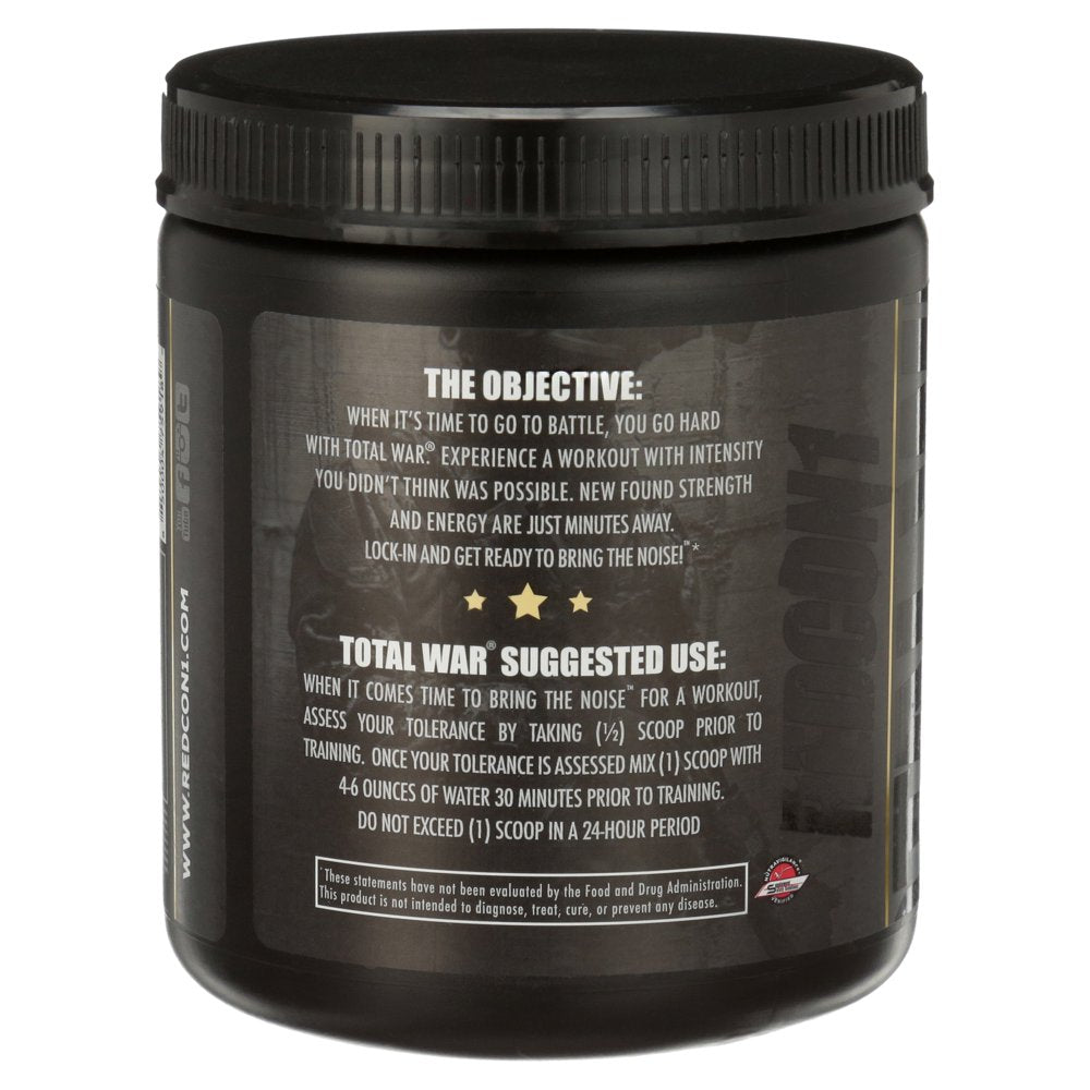 Redcon1 TOTAL WAR professional-grade, award-winning preworkout is formulated with premium ingredients packed with caffeine, green tea, beta-alanine, and Juniper that provides you with the unstoppable power to help you dominate even your most challenging workouts. With 30 clinically dosed servings per container and transparent ingredient labeling, everyone can now have access to an elite level pre workout without breaking their bank or sacrificing for a low-quality ingredient pre workouts.