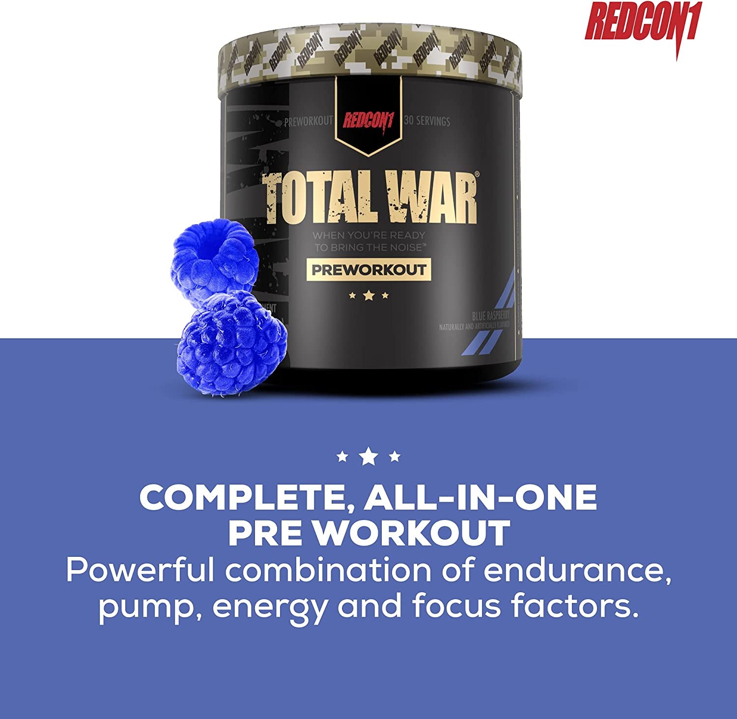 REDCON1 Total War Pre Workout Powder, Blue Raspberry - Beta Alanine + Citrulline Malate Keto Friendly Preworkout for Men & Women with 320Mg of Caffeine - Fast Acting (30 Servings)